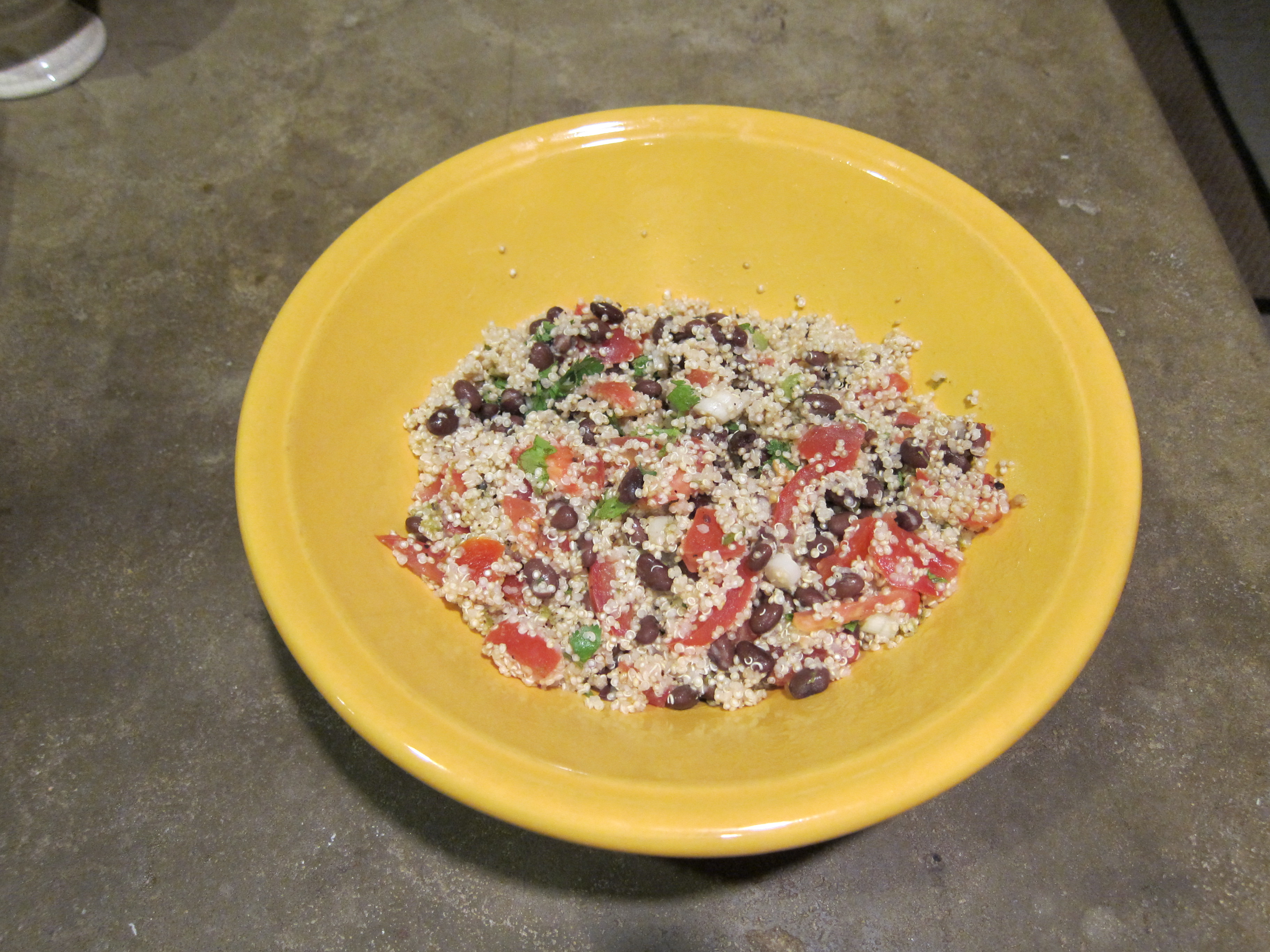 The first is Quinoa and Black Bean Salad, which I have made several times and always love. The recipe is from Epicurious. Voila.