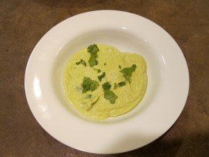 This was delicious with my salad tonight. This photo doesn’t capture the soup’s rapturous shade of green, but it really is lovely.