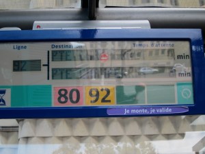 The buses here are super easy to use.  The bus stop is a short walk from my apartment, and has the bus number, route, and next departure time clearly marked.  These handy-dandy signs are in all the bus stops, and tell you when the next two arrivals will be of each of the two or three buses that come to that stop.