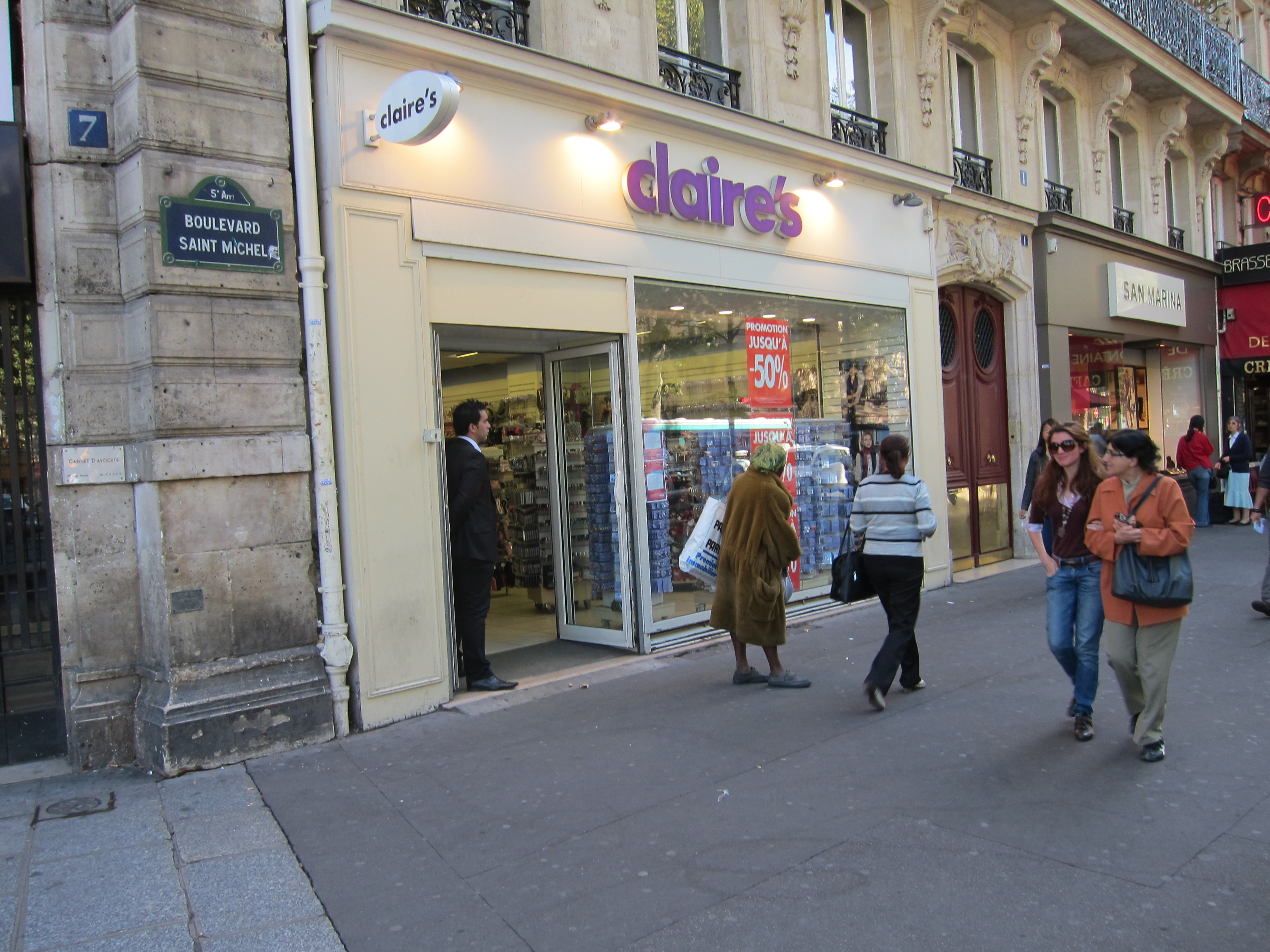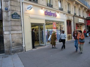 The next bus drove down Blvd. St. Germain, which was particularly lovely today.  I got off in front of the Cluny museum (which I haven’t yet been inside but will when the weather turns bad) and then strolled along the boulevard.  I was relieved to see that Paris has a location of Claire’s.  We send all our best stores over here, I guess.