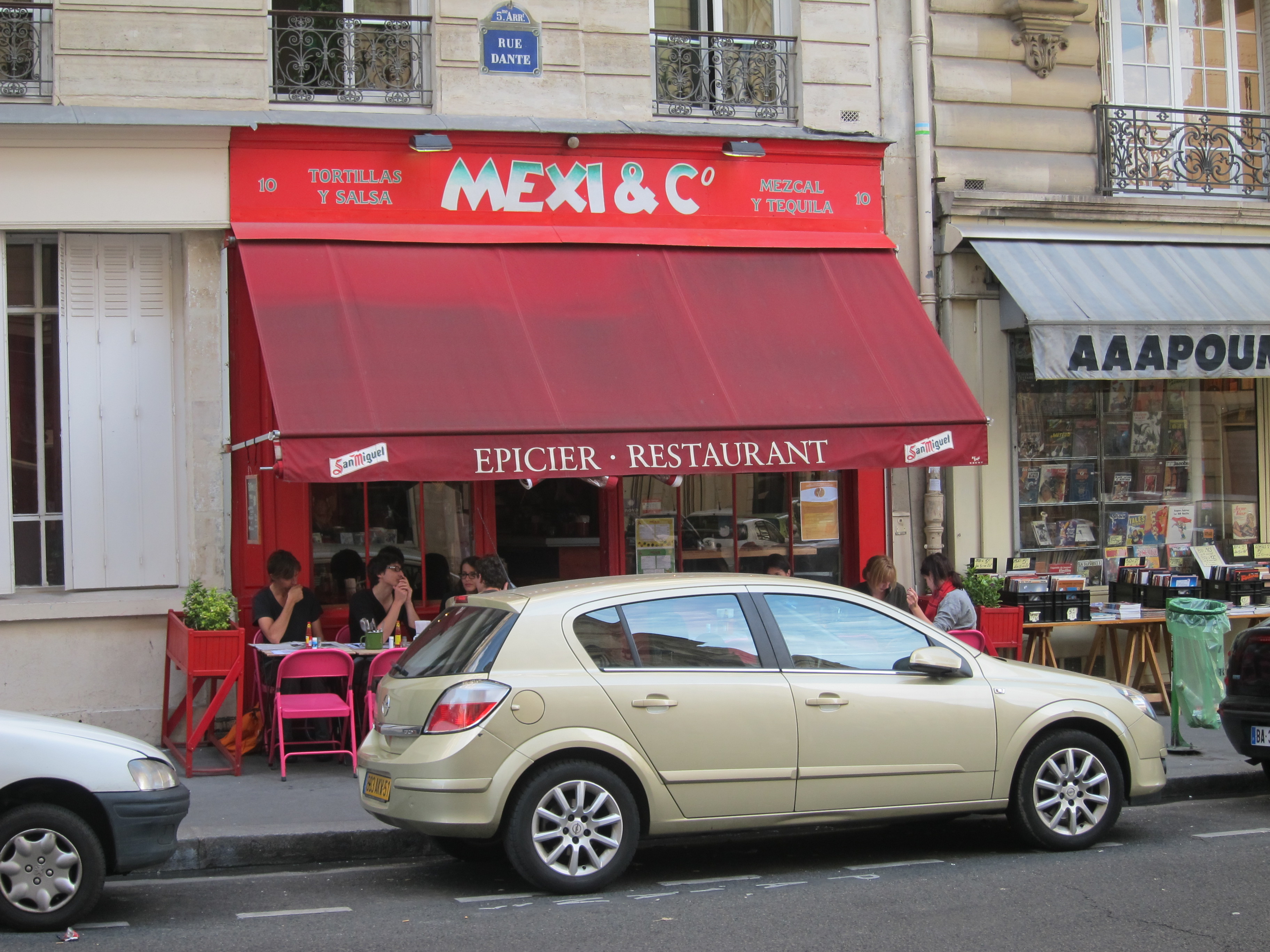 Too bad the car is blocking view of the four bright pink tables on the sidewalk, which were, sadly, full.