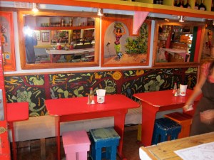 After a few wrong turns I reach my final destination.  Mexi and Co. is a tiny but tres cute Mexican cafe, which also happens to have some cans and jars of things like peppers, mole, beans, hot sauce (not salsa),  and taco sauce for sale.  I was  happy that I hadn’t eaten lunch yet, because I was so thrilled to fill my stomach that it didn’t matter that there was nothing I wanted to fill my shopping bag with.