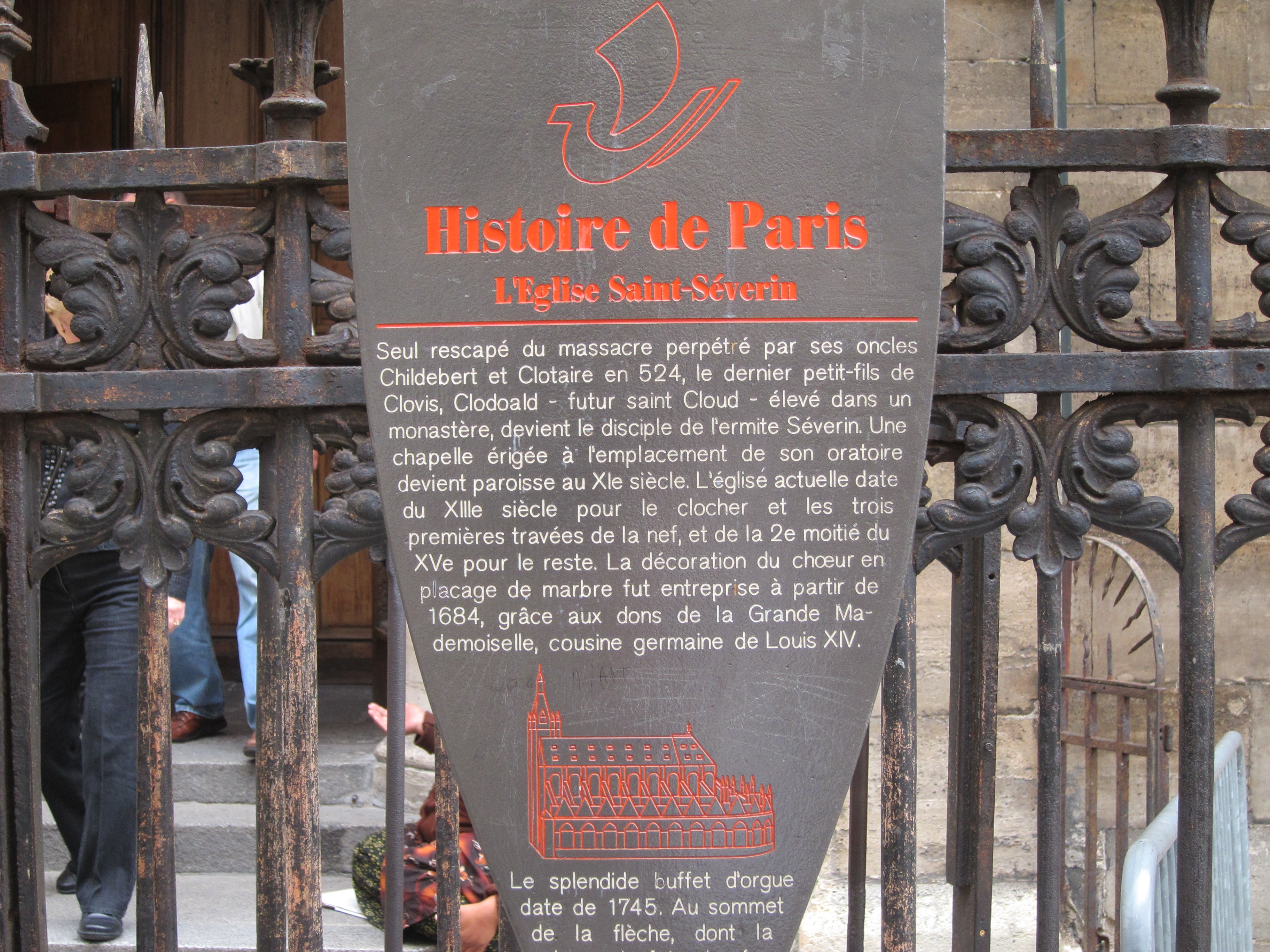 Of course we went through a couple of fabulously old churches. One of them contained the tomb of St. Genevieve, the patron saint of Paris. I couldn’t get a picture because we were chased out of the church–just because they were having a mass. Give me a break! But the church I was able to snap was gorgeous. The oldest parts of it are from the 13th century.