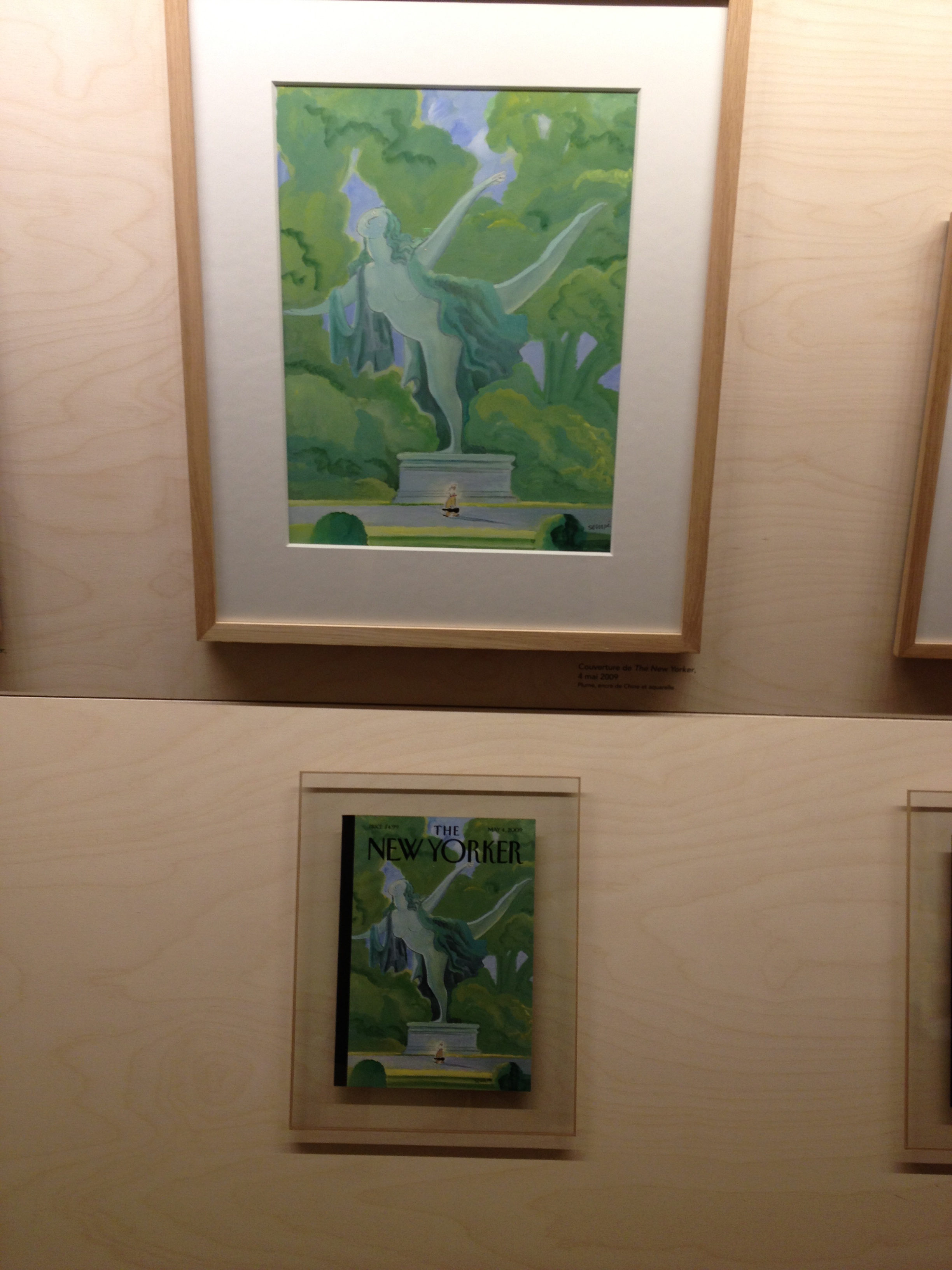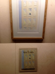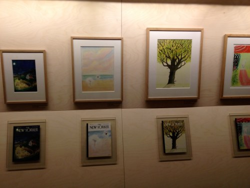 With that background, imagine my surprise and delight to see an entire wall of his art and the New Yorker covers it created. His first cover was in 1979, when the magazine cost “one dollar”. His most recent cover on display bore a price of $6.50, but I can’t read the date on it.
