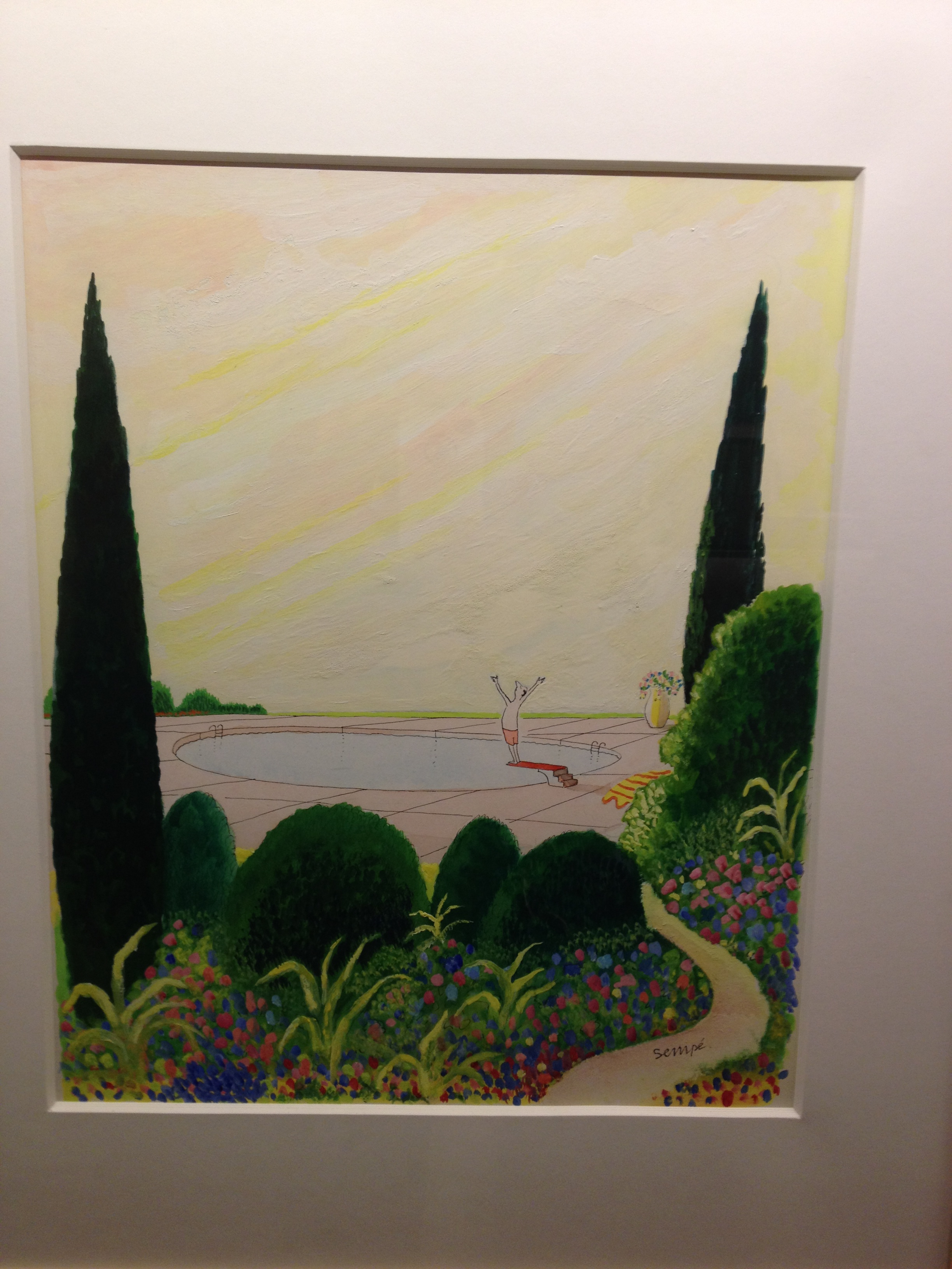 When we got inside I realized that I was familiar with this artist because of his extensive publication in the New Yorker magazine. I grew up with the New Yorker, and it still holds a warm place in my heart and inspires my utmost admiration for anyone who can keep up with its weekly publication. When I was a kid, the coffee tables and bedside tables were forever piled with colorful copies of this magazine. I subscribed for a short time as an adult before being forced to wave the white flag and admit that I just wasn’t able to read them before the next one landed, as much as I wanted to believe I could.