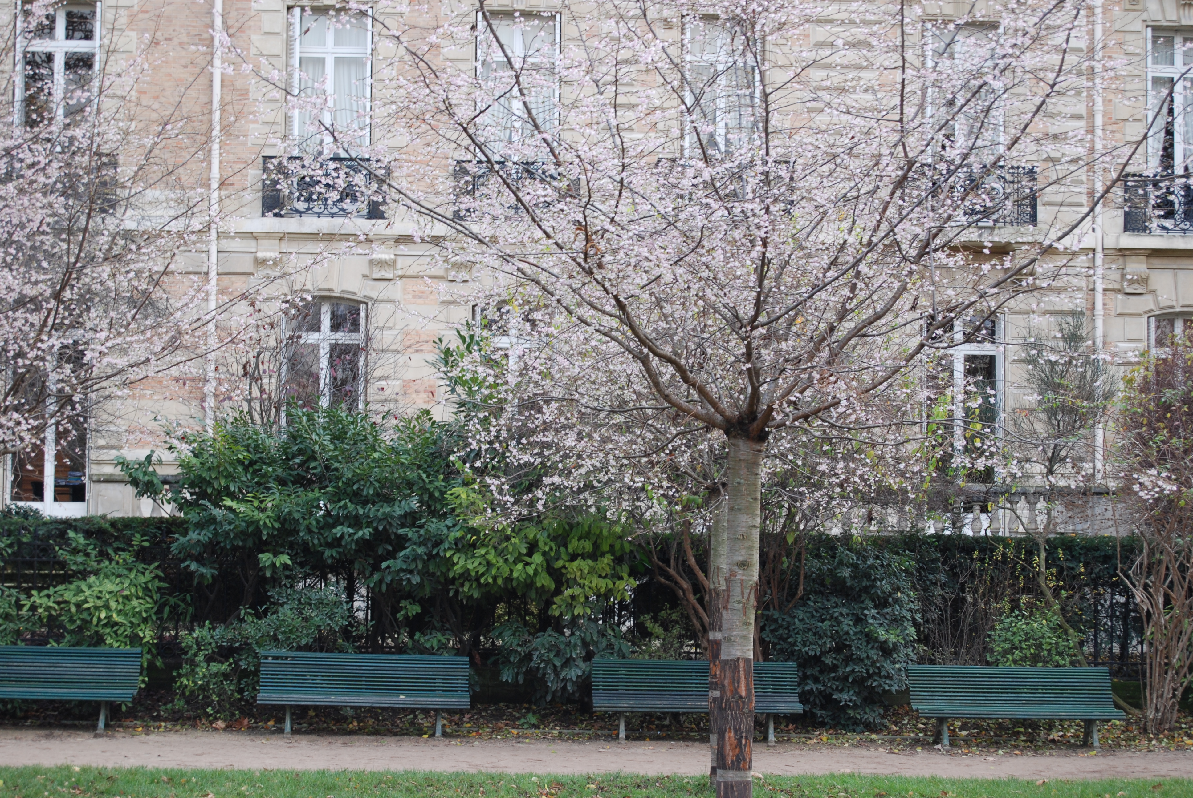 I love Parc Monceau — and your pics look even better with the cool snow flakes drifting down on the computer screen. You’re so clever! I didn’t know that there’s a widget to create snow!