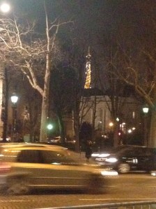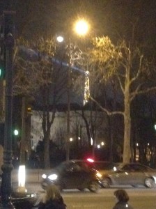 Finally, the evening stroll to the Champs Elysees, where the Eiffel Tower twinkled obligingly.