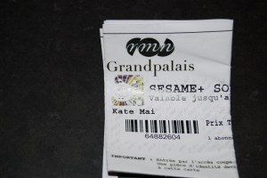 OK, so this one is not really plastic, because I printed it off the computer myself, but it’s my pass into the Grand Palais, the glass-topped building that I take way too many pictures of because I walk by it every day. I get in free there and also at an affiliated gallery , le Musee de Luxembourg, which at this very moment has an exhibit of Cezanne in Paris. I can’t wait to see it.