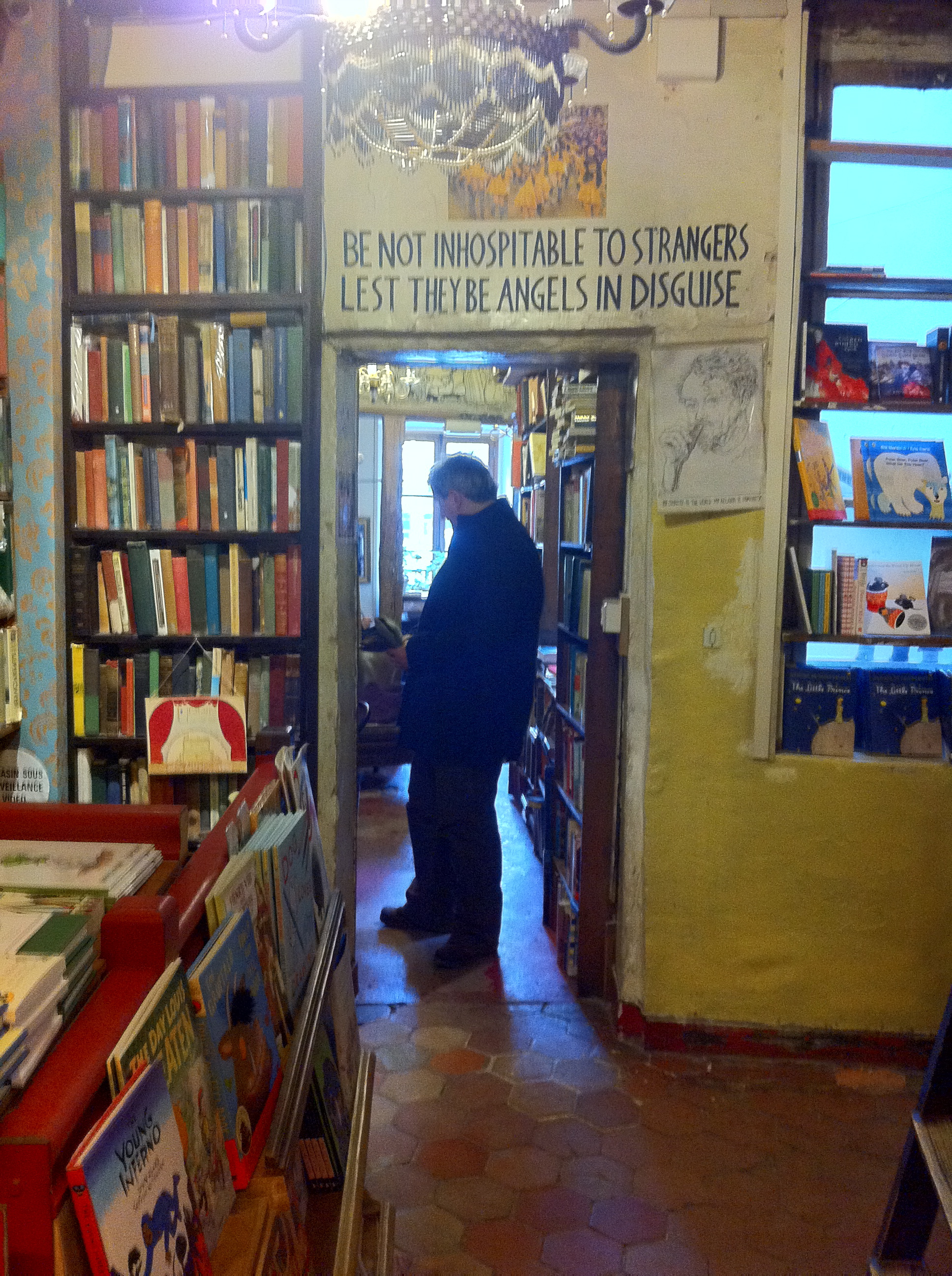 We went to the Musee Carnavalet and revisited the exhibit on 19th century Parisians. We went to Shakespeare and Co. and bought some books. My friend engaged in a bit of civil disobedience herself, as the new store policy forbids photographs, and she snapped a few like this one. We just can’t help ourselves. We’re kind of Thelma and Louise-ish. Scoff-laws. Dangerous. That’s us.