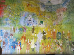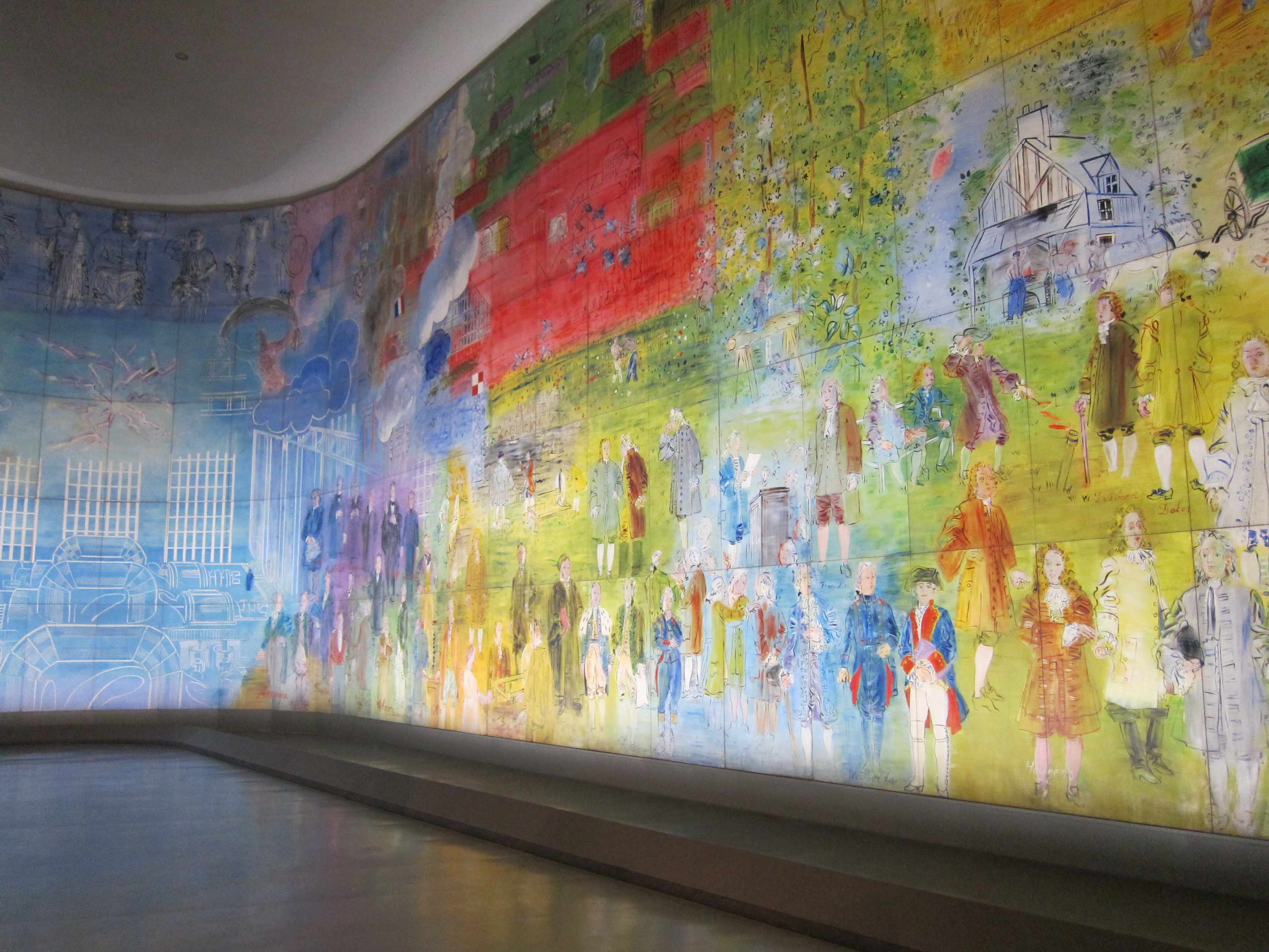 My bi-weekly tour group visited the Musee d’Art Moderne de la Ville de Paris, which was a) free and b) embarrassingly close to my apartment. I loved it! It’s so cool that after living here for six months I am still constantly surprised by the gems hiding on every corner. While the Pompidou Centre is the national museum of modern art, this one belongs to the city. The first room we saw was surrounded by this incredibly large mural done by Dufy for the 1937 International Art and Technology Exhibition. It was commissioned by the French electric company to depict the history of electricity, which sounds really boring but was actually beautiful to look at.