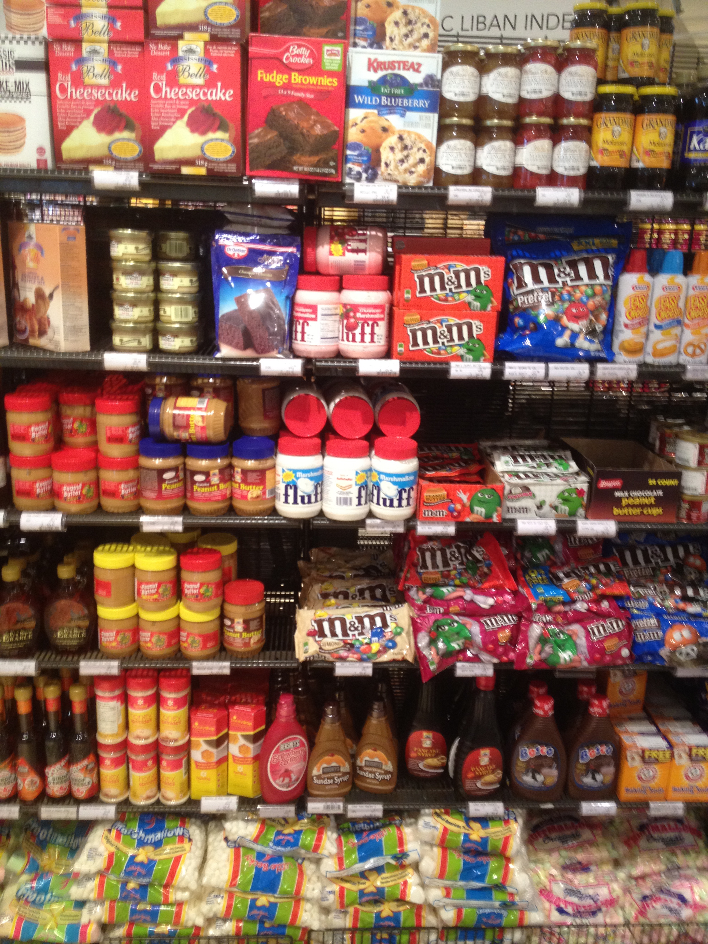 The Bon Marche is also known for its incredible food market, called La Grande Epicerie. It was huge, and very, very pretty. The Easter candy selection was much nicer than where I usually buy it, which is Walgreens. I thought you might like to see their “United States and Canada” shelf. No wonder they think we eat junk and are all obese! Strawberry and regular marshmallow fluff? Assorted spray cheeses? Boxed cheesecake?