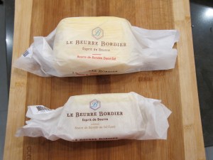 As for the butterfat (because I know you all want to think about butterfat), American butters must contain at least 80% butterfat, while French butters are required to contain at least 82% butterfat (except for the salted butters, which can contain only 80%). That doesn’t sound like a big difference, but as Dorie reminds us, what isn’t fat is water, which can explain a lot. Butterfat = delicious; water= not delicious. Many of the best butters in France contain 84%-86% butterfat. Not the ones that I buy, of course, but I wouldn’t turn down a nice pat of it on my baguette if offered to me.