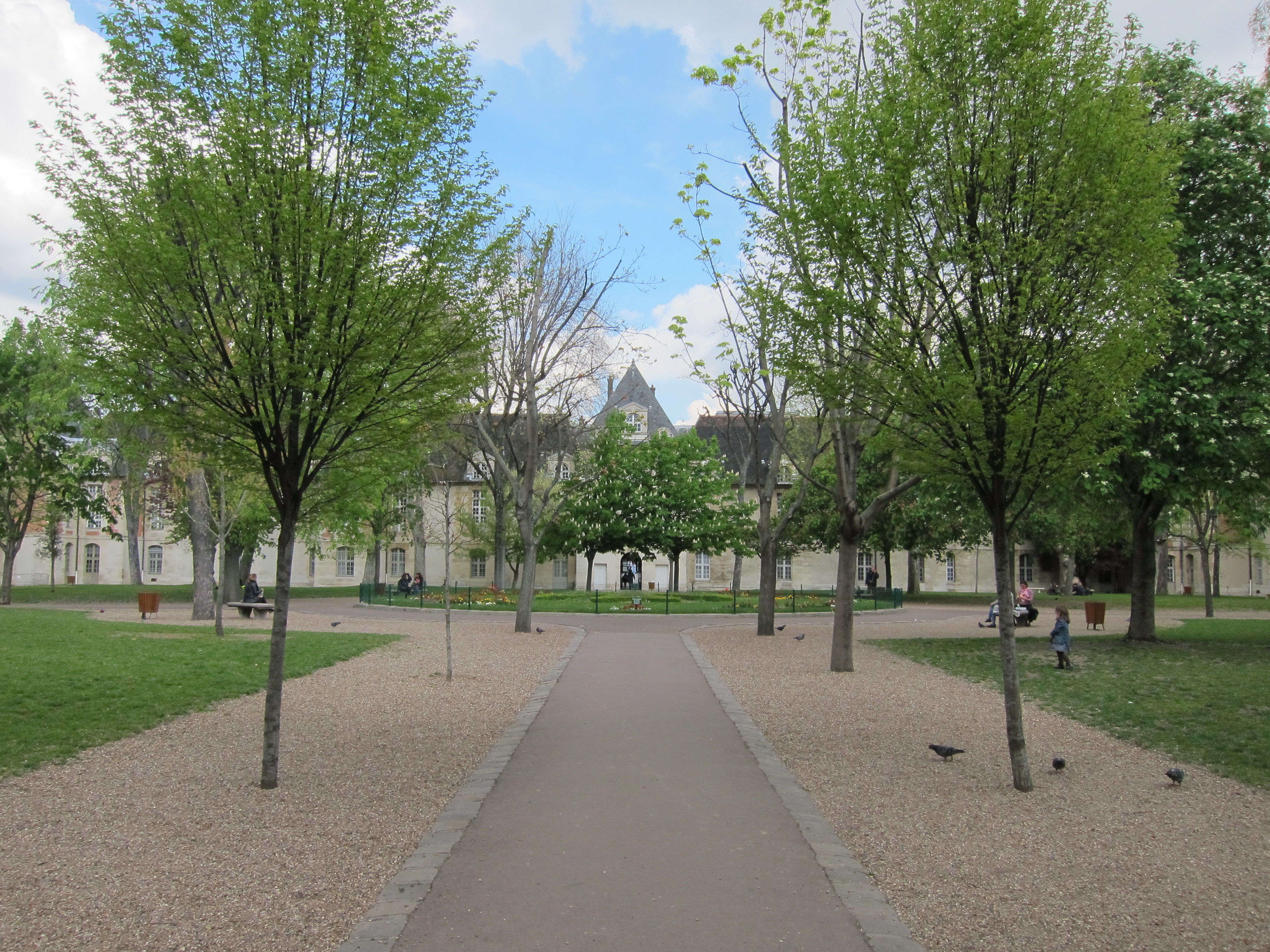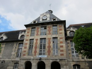 A short walk from the canal is the beautiful Hopital Saint Louis.  This hospital was founded in 1607 by King Henry IV, following the devastating epidemics of 1562, 1596, and 1606.  It was built outside of the city walls, and was intended to be a place to care for the victims of the plague, while keeping them away from the unaffected population.  The hospital was used only sporadically during epidemics and for other special purposes until 1773, when it became a permanent hospital.    In the 19th century the hospital became specialized in dermatology.  Today there is a modern hospital just outside the walls of the old building, which is now used for administrative purposes.