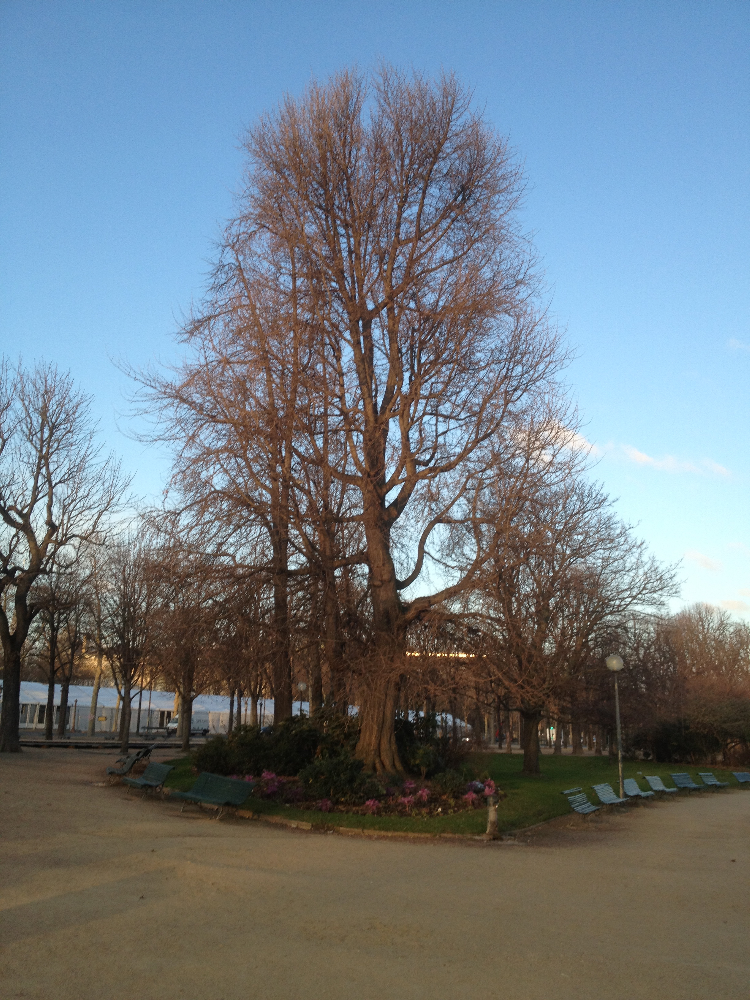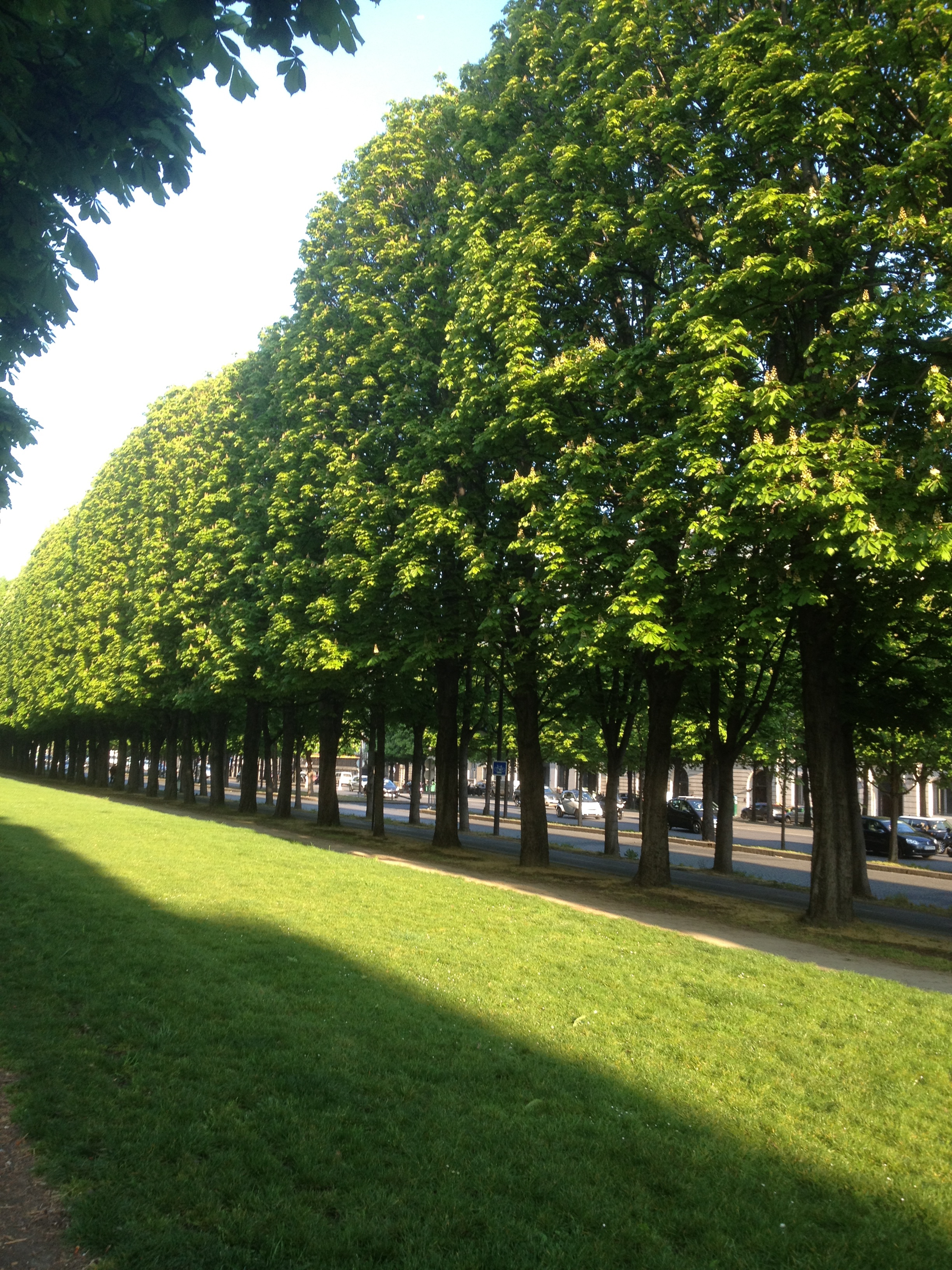 Although we have had to bring the wool coats and scarves back out of the closet (ugh), the visual transformation of Paris from winter to spring is almost complete. I have to say that I really loved Paris in the winter. Most of the trees here are deciduous, and the winter light changes the city dramatically. I also loved the stark lines of the naked trees against the sky. It was lovely. However, now that the green canopy over the city has returned, I find that I love it in a whole new way. Rarely do I find myself on a street that is not almost completely shaded by new, bright green leaves. And why do I hate topiaries and unnaturally pruned shrubbery in Houston, but find the square French trees perfectly acceptable, if not darn right charming? It’s shear madness, I tell you! (get it?)