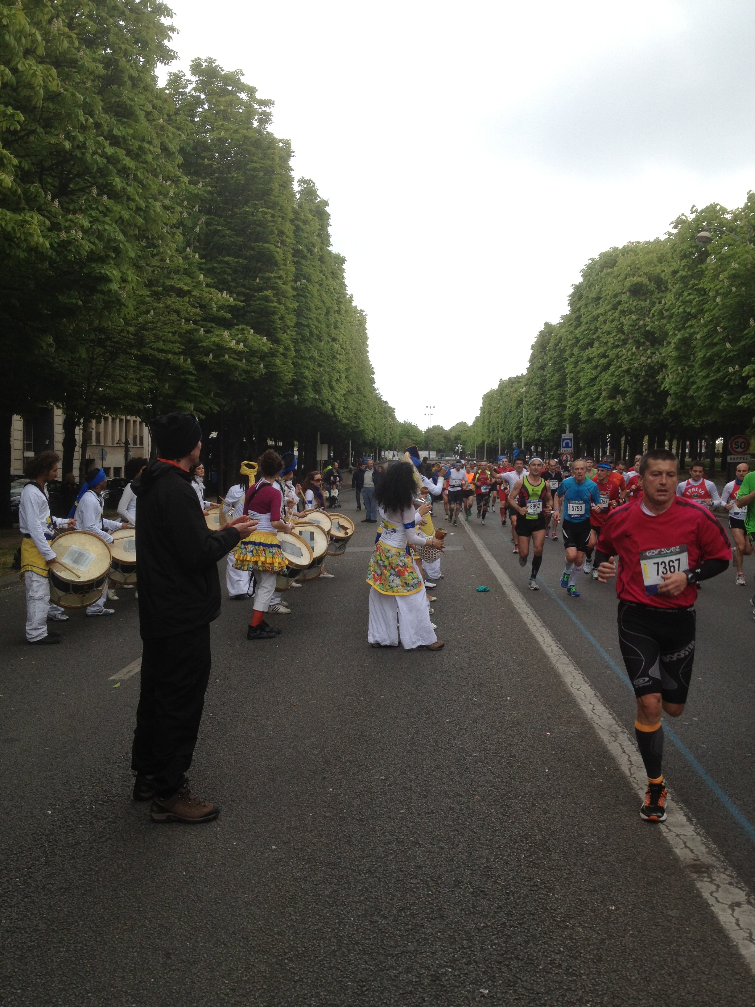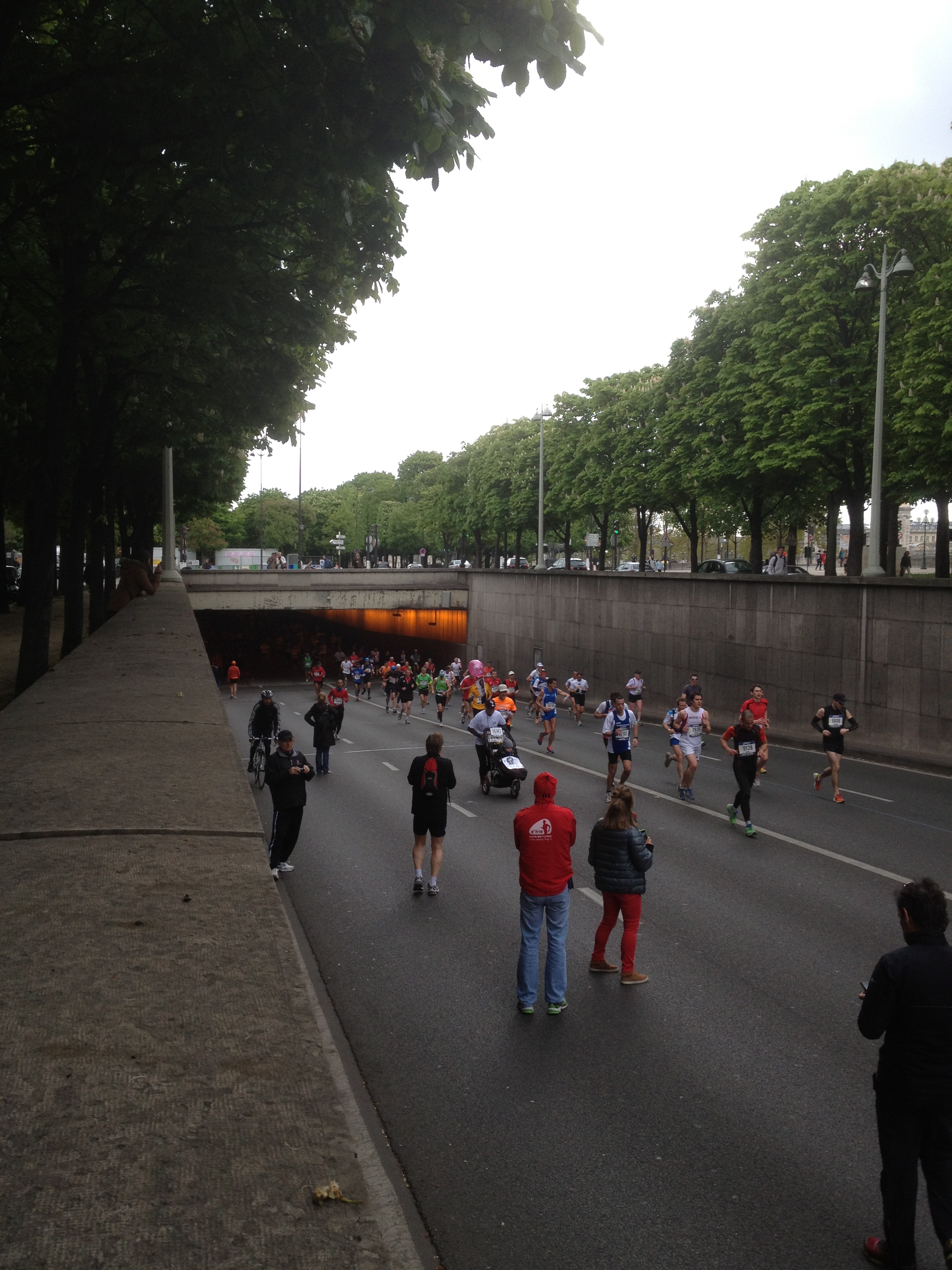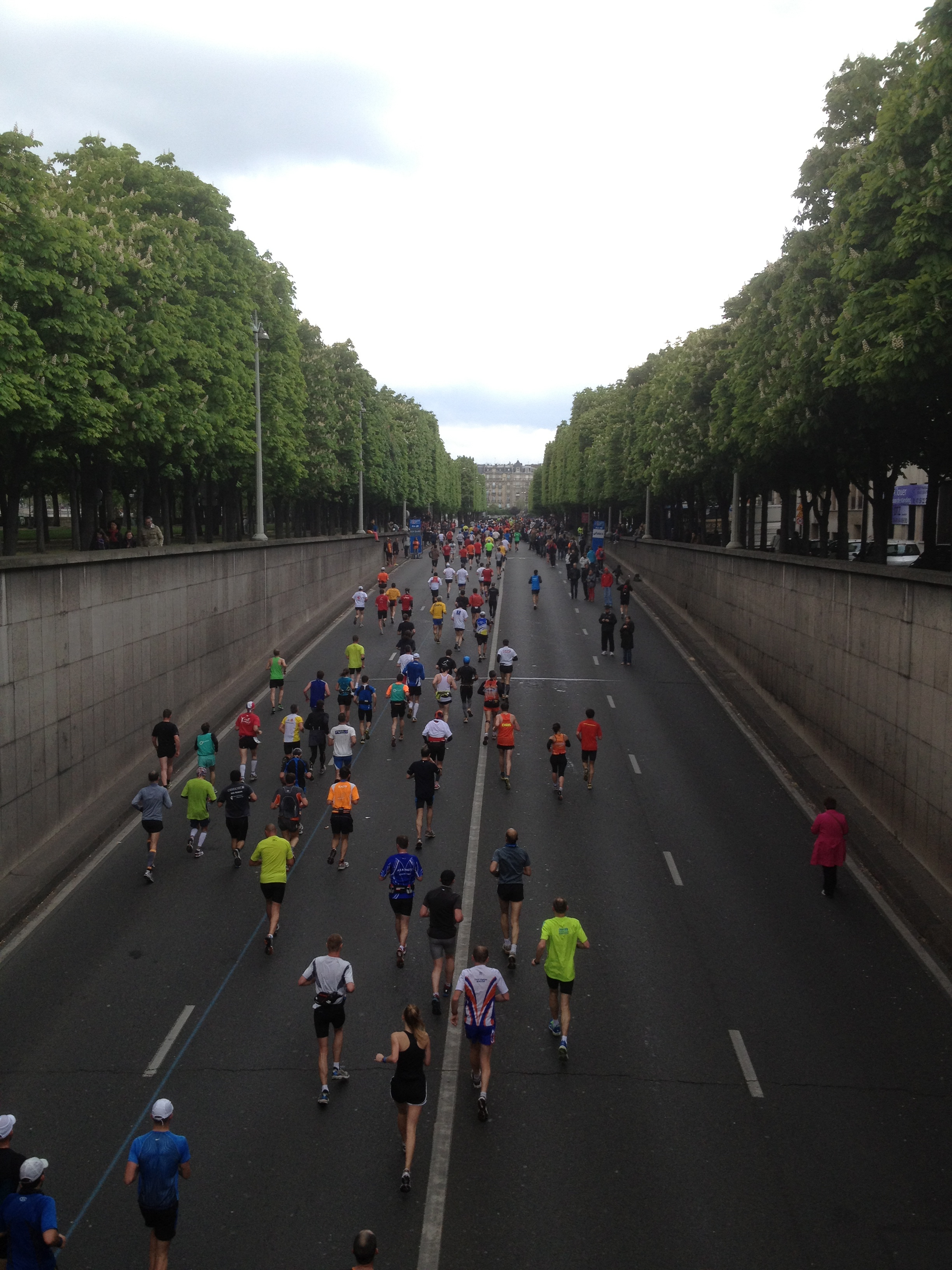 I can’t believe it has been a year since I visited Paris and cheered my husband and my good friend across the Paris Marathon finish line! Last Sunday was Marathon Day again, and this time my husband joined me in cheering on masses of colored shirts and contorted faces. This year’s weather was much more conducive to running than the 80-something degrees of last year, but it still looked damn hard to me.
