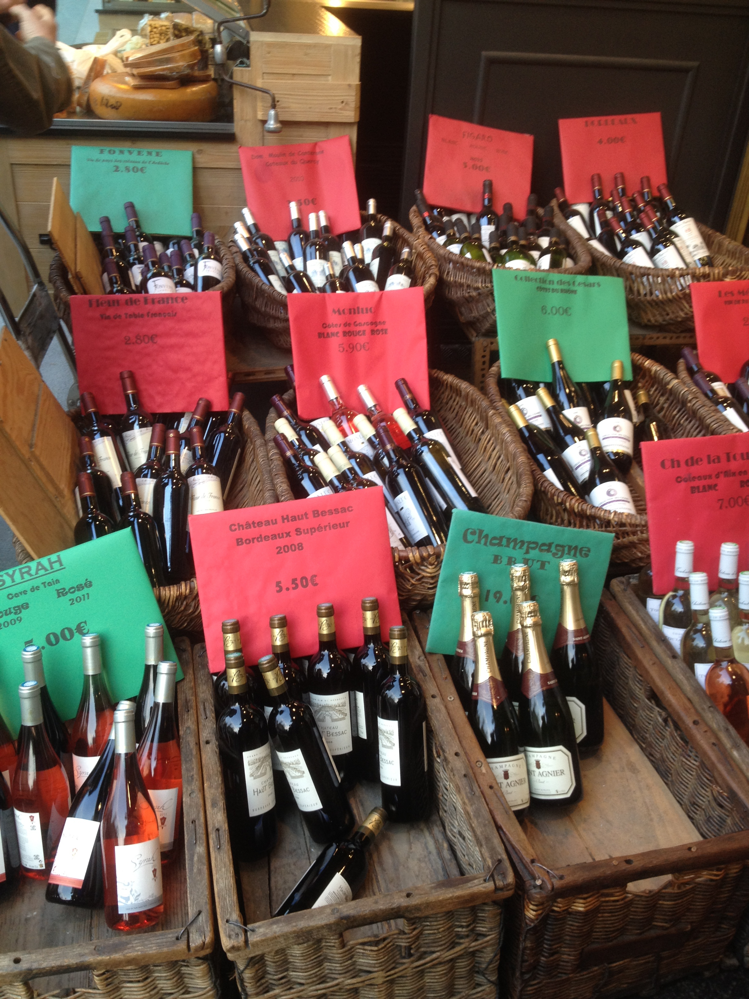 These lovely baskets full of wine bottles were sitting in front of a wine store. Man, I love this place.