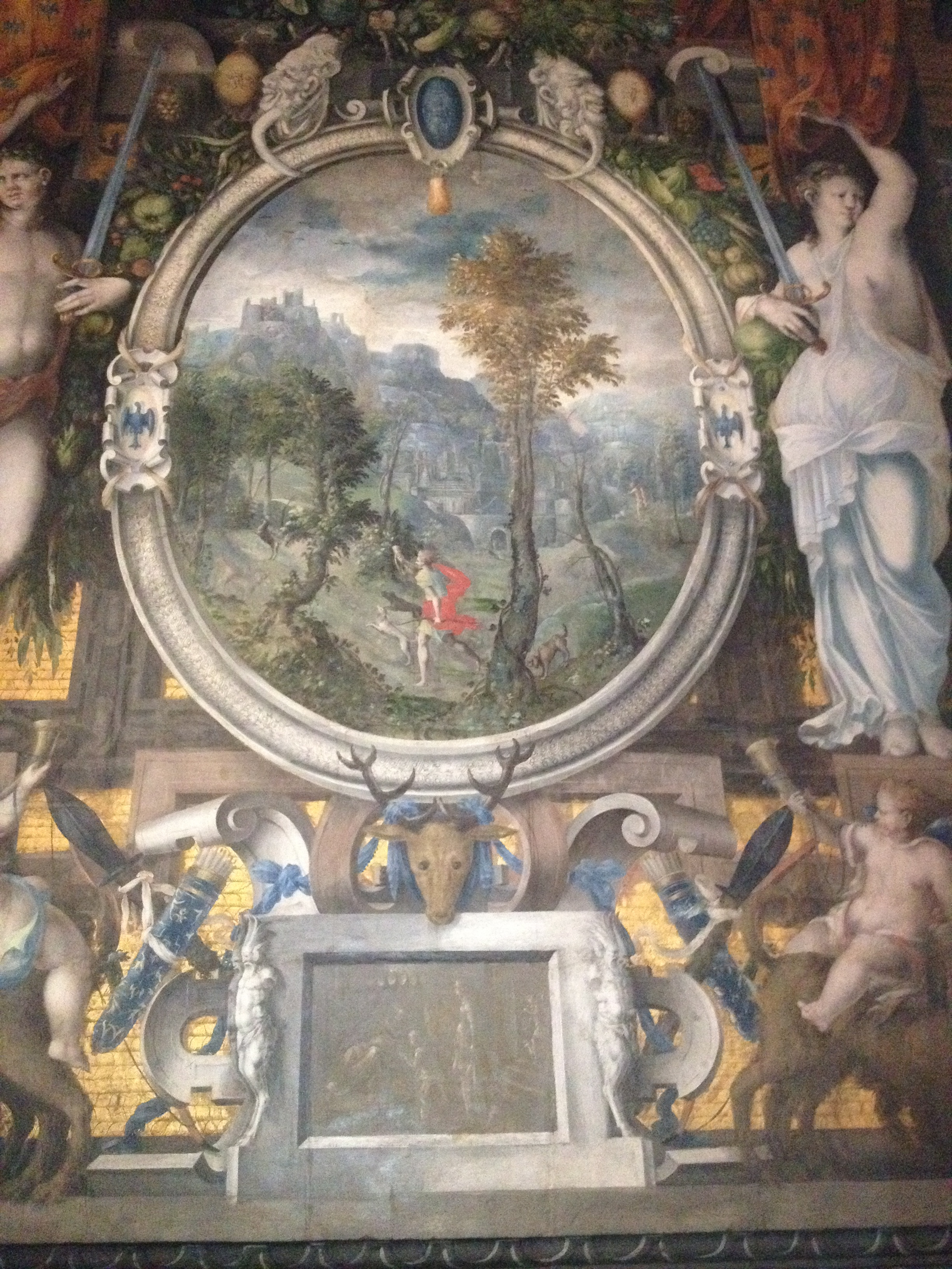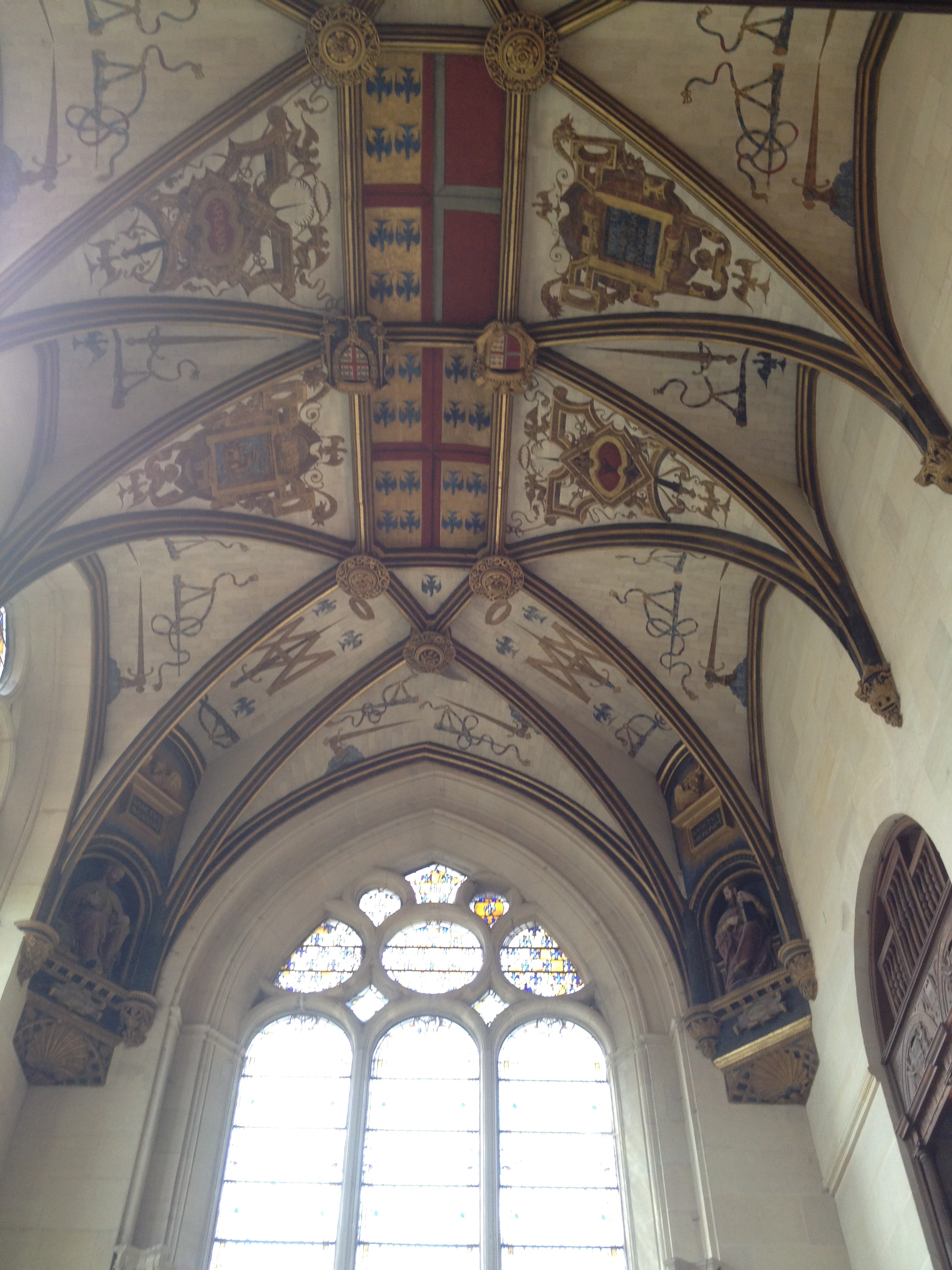 After consulting our book, An Hour From Paris, we decided to go to Ecouen, a 14th century chateau surrounded by a forested park. The chateau, built in the Renaissance style, is home to the National Museum of the Renaissance. It also is home to a little restaurant with a smattering of tables outside, overlooking the countryside. This was fortuitous, as the chateau closes from 12:30-2:00, and we arrived at approximately 11:45. The hour and a half closure was just enough time for us to enjoy sunshine, quiche, a bottle of wine, and dessert, before resuming our tour. Delightful.
