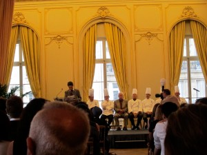 Then we walked down the street to a very swanky building to watch the newest chefs receive their toques and diplomas. The room was a tad warm and the ceremony a tad loooong, and I was glad I hadn’t gotten off of a plane from the US that morning, as most of our companions had done. Yawn.