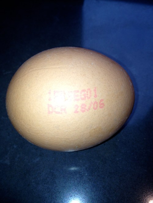 The first digit (“1”) again indicates how the chicken was raised.  The other characters indicate where in France the chickens were raised and even their flock number.  All we need now is the the name of the chicken!  The expiration date is also repeated on the shell.