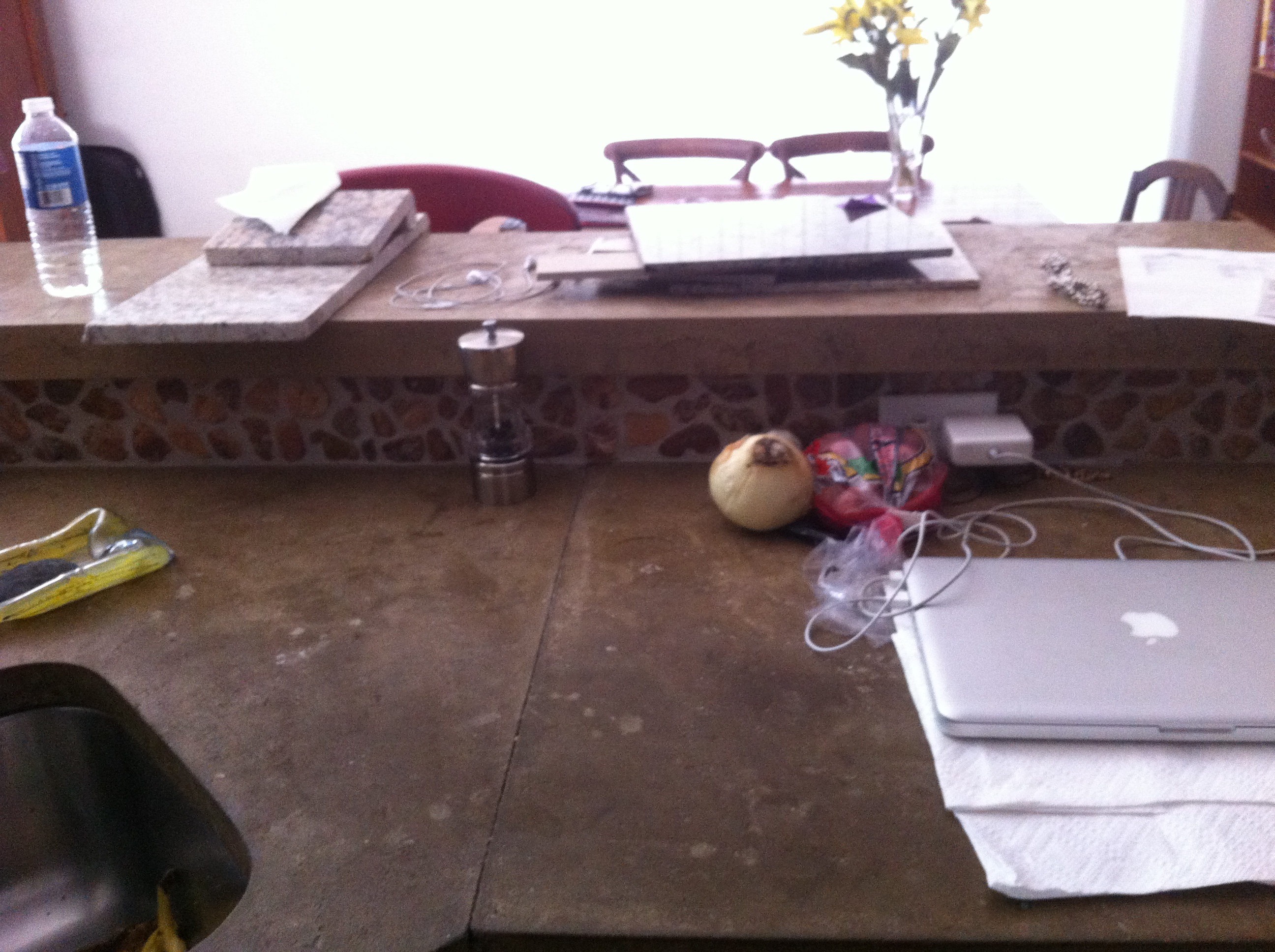 Yea! Shiny, clean granite! Sooooo much better than the dirty concrete! And now, the next step was the backsplash.