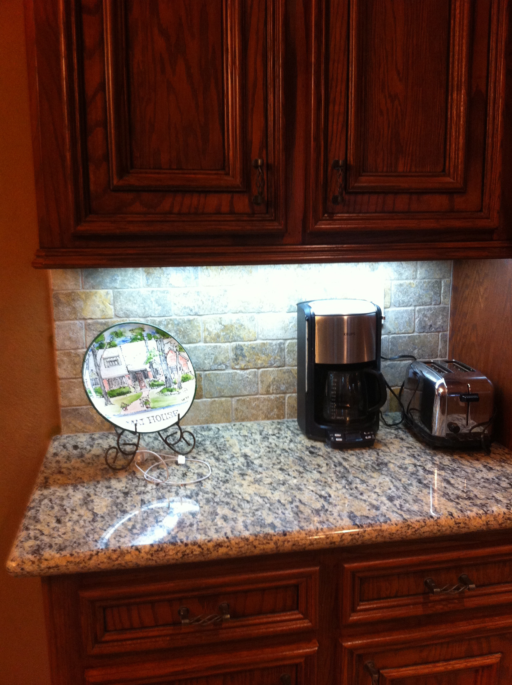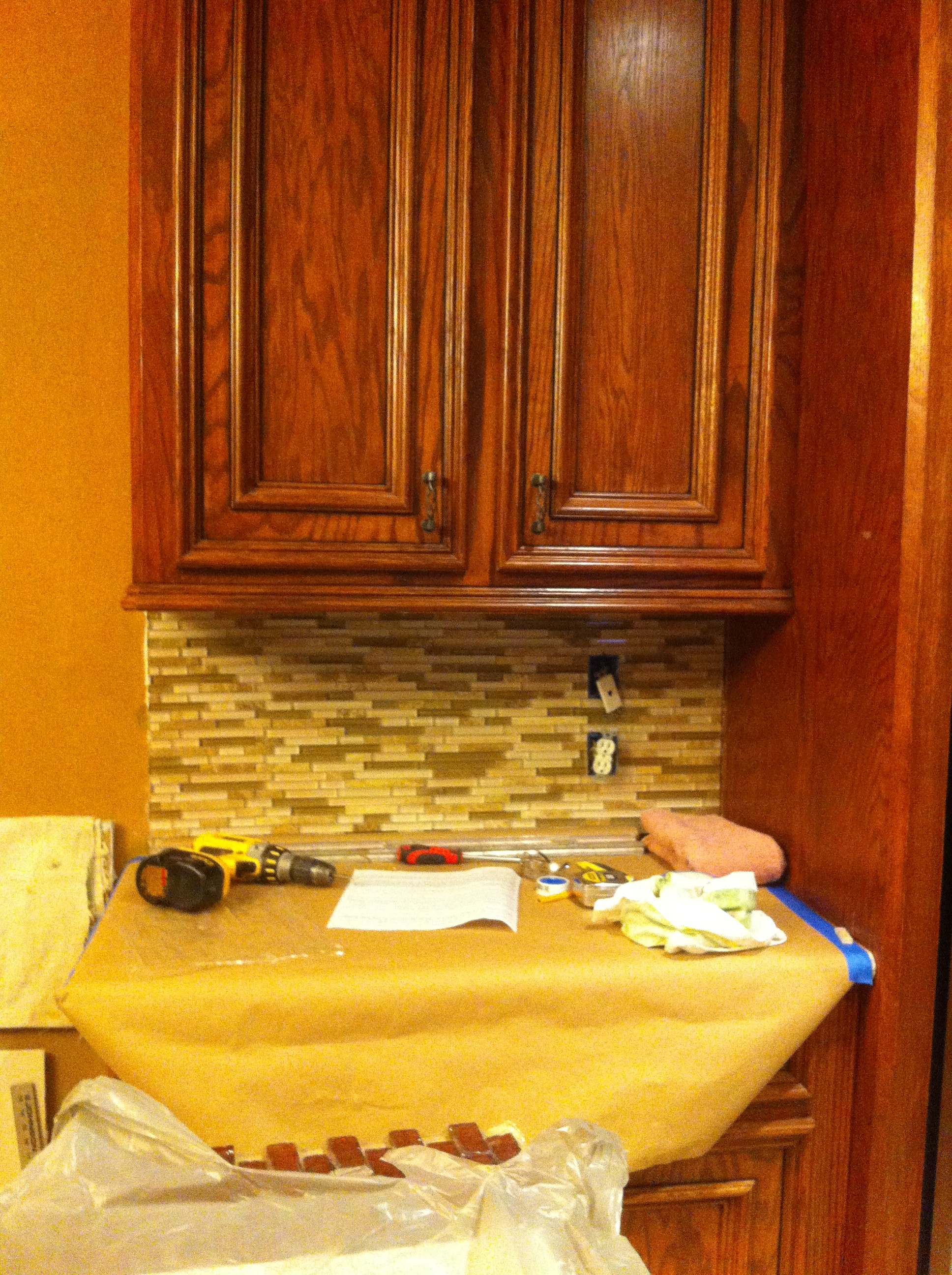 Looks great! Of course, I liked the glass thing- used it (or something very similar) as an accent in my backsplash in Colorado. Now you are an official empty nester. Congrats!