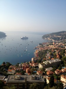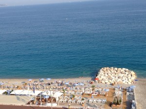 Saturday afternoon we ate lunch on the beach and then collapsed in beach chairs and hardly moved for several hours. We did venture into the Mediterranean, which was a lot colder than it looked! The water was gorgeous- perfectly clear down to the smooth rocks on the bottom. The temperature didn’t seem to bother the French and Italian people around us, who were luxuriating in the water as if it were a thermal bath. I don’t know how they did it.