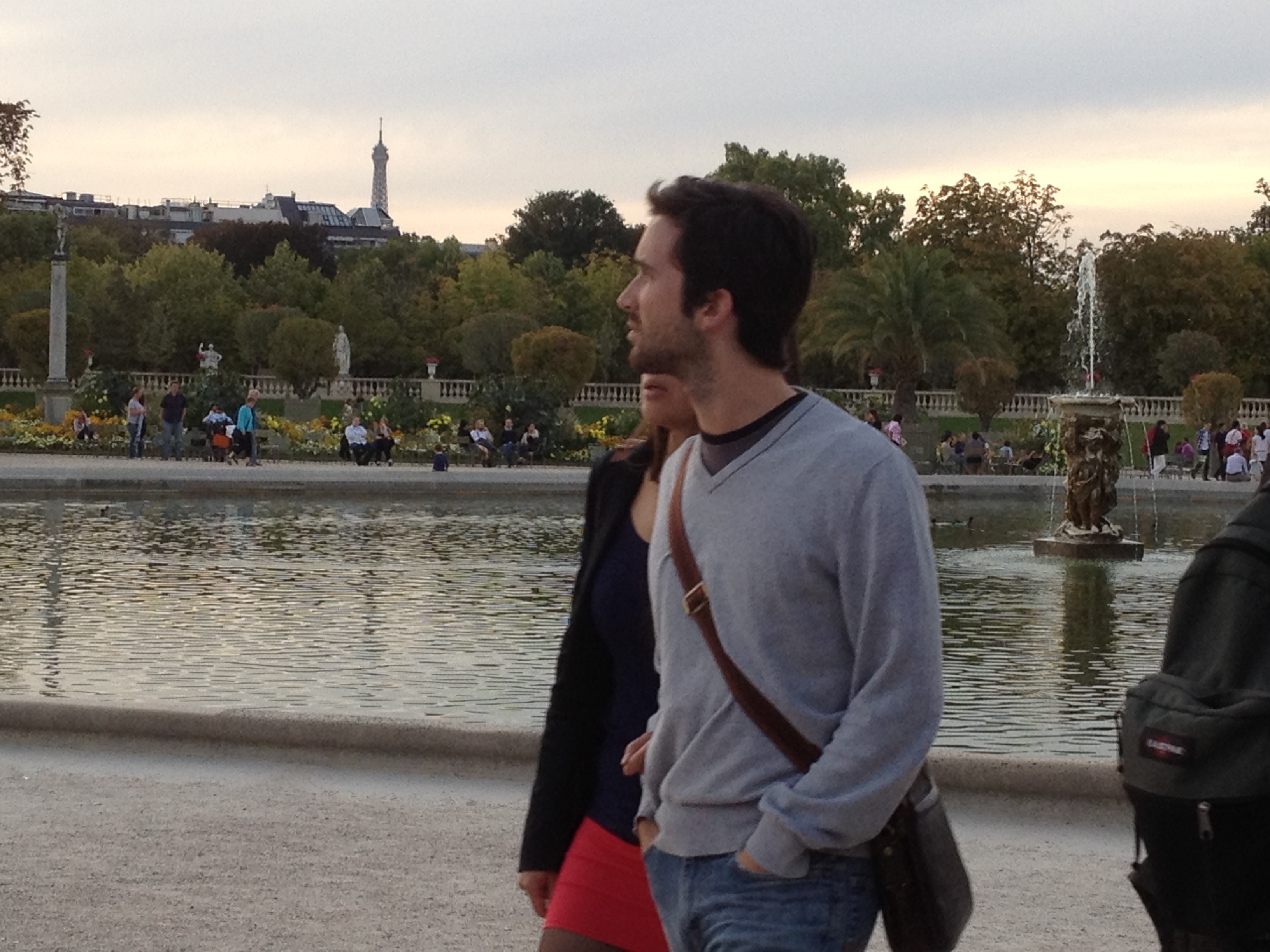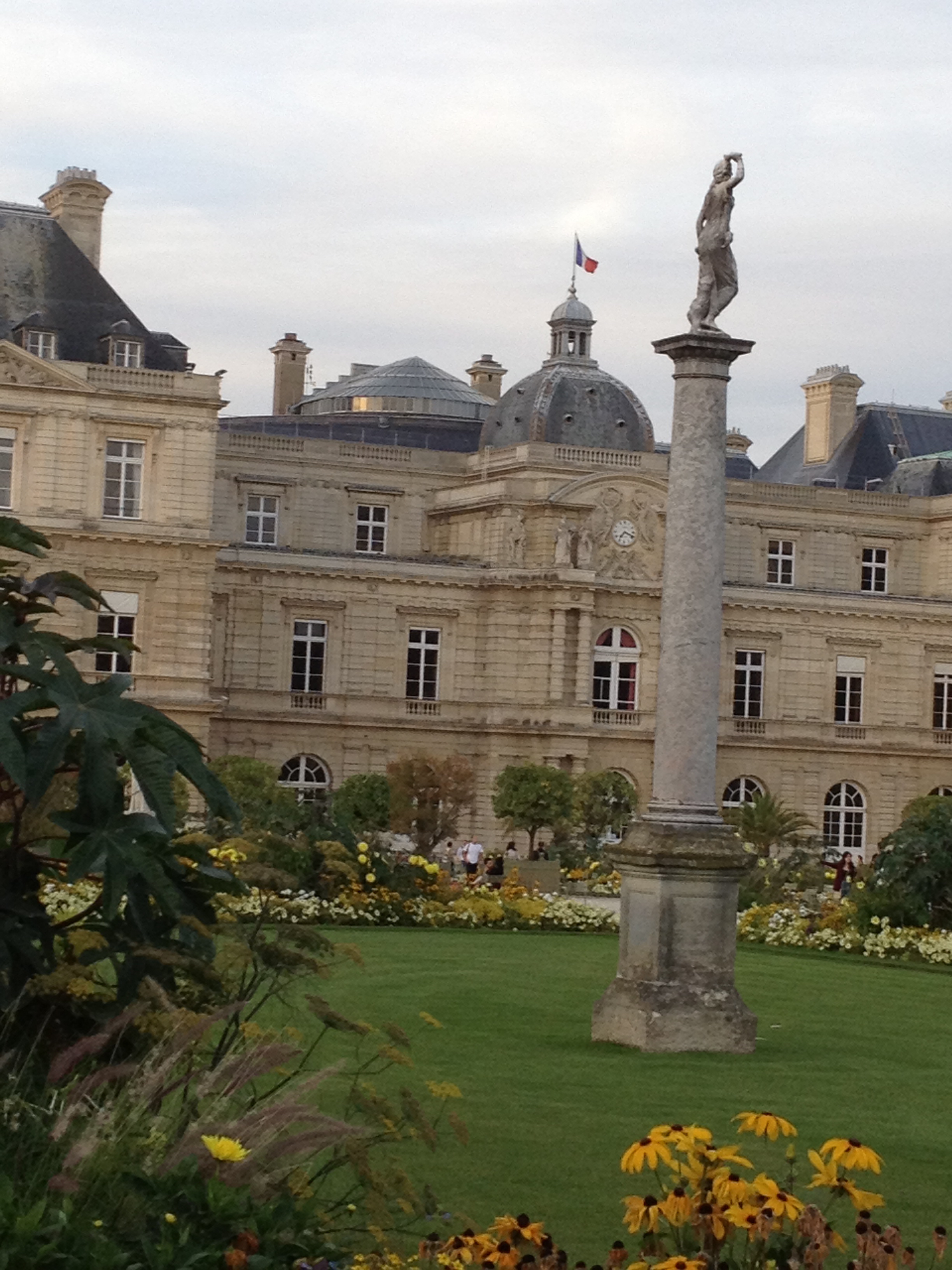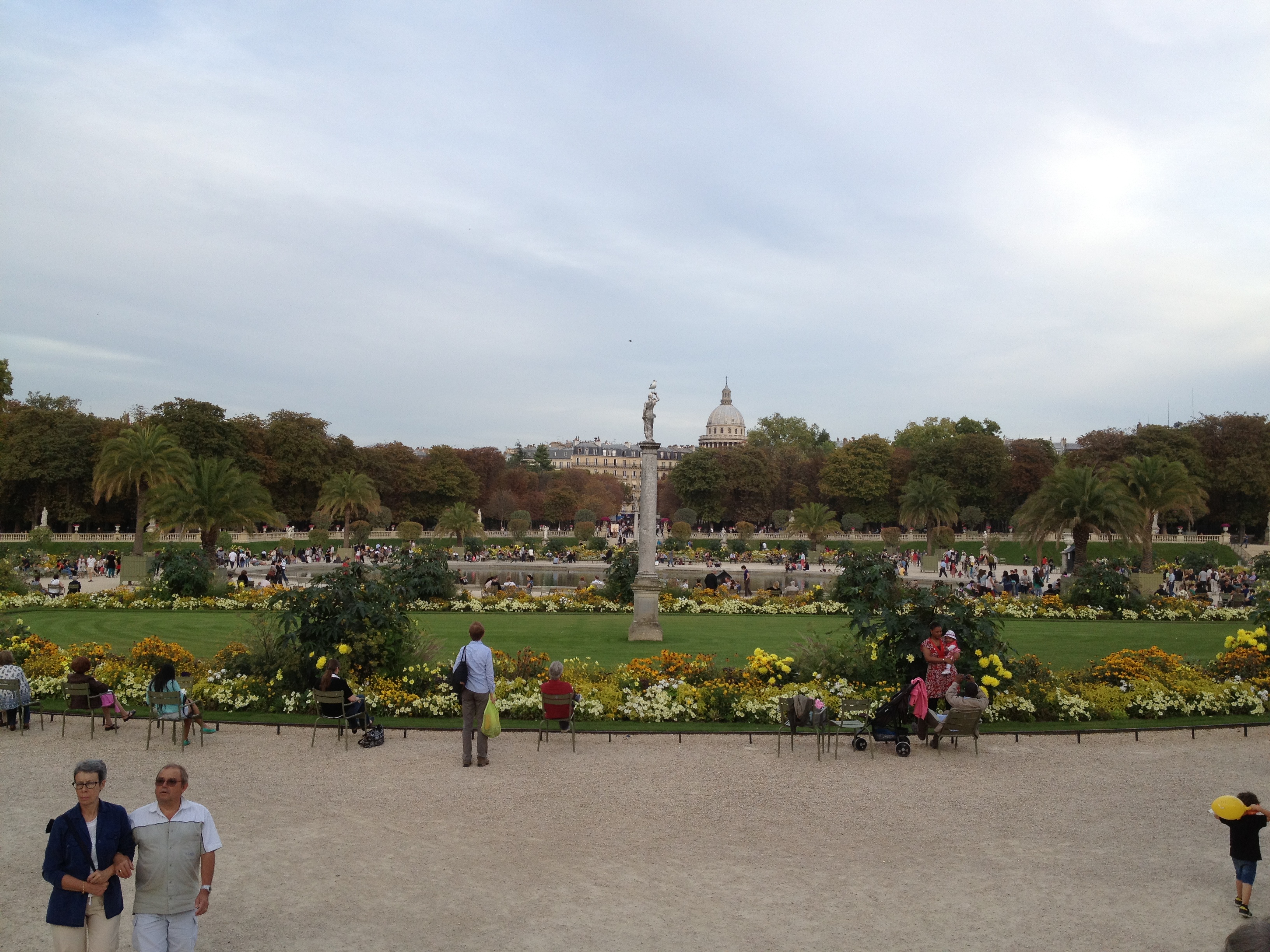 The park was buzzing with people, as it typically is on a warm, fall afternoon. Mark and I strolled in, walked around for a bit, and then grabbed a couple of the green chairs and relaxed into them. We hadn’t been seated more than a few minutes when an animated police whistle began chirping in the background. We commented that someone had clearly committed an egregious violation of park rules, such as sitting on the grass or kicking a soccer ball. But the whistle didn’t stop, and soon it was joined by what sounded like an entire chorus of whistles, in all different sound patterns. Then we began to see them- throngs of park police spreading out over the park, all blowing their whistles and yelling, “FERMETURE!”. People gradually began moving around us, dispersing toward the many different park exits, but at a leisurely pace. No one seemed concerned about the noisy whistles or commanding voices announcing the closure of the park. I guess they were used to it. After a few minutes the police began addressing people individually if the poor folks were not moving quickly enough to suit them. It was quite a sight- all those lounging, strolling people standing up and moving towards exits at once. The sudden activity kind of reminded me of an ant hill that got kicked over.