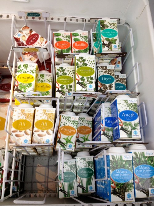 No, mon cherie, we do not have stuff like that in the frozen food section of our local shops here in Tejas. And I, like you, don’t do much frozen food so when I do need the occasional item found in those aisles I have to look in every case because I don’t know where anything is. Thus, I do see a lot of what they have to offer. I love the frozen herbs and the small portions. Also love your descriptions of the “emerging from the craziness of small children.” Haven’t heard it put so succinctly and oh, so true!
