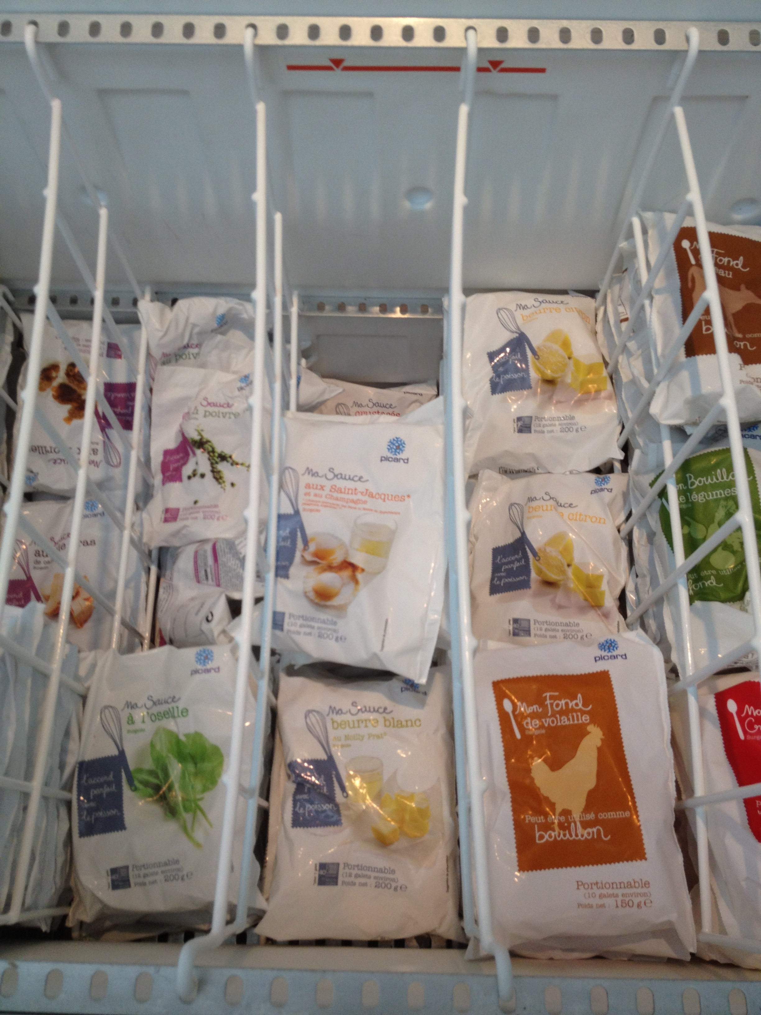We all know that the French love their sauces, and here they are in frozen form. AND I spy some chicken broth in there, which is the only alternative to powdered broth here. Need to get me some of that for sure.
