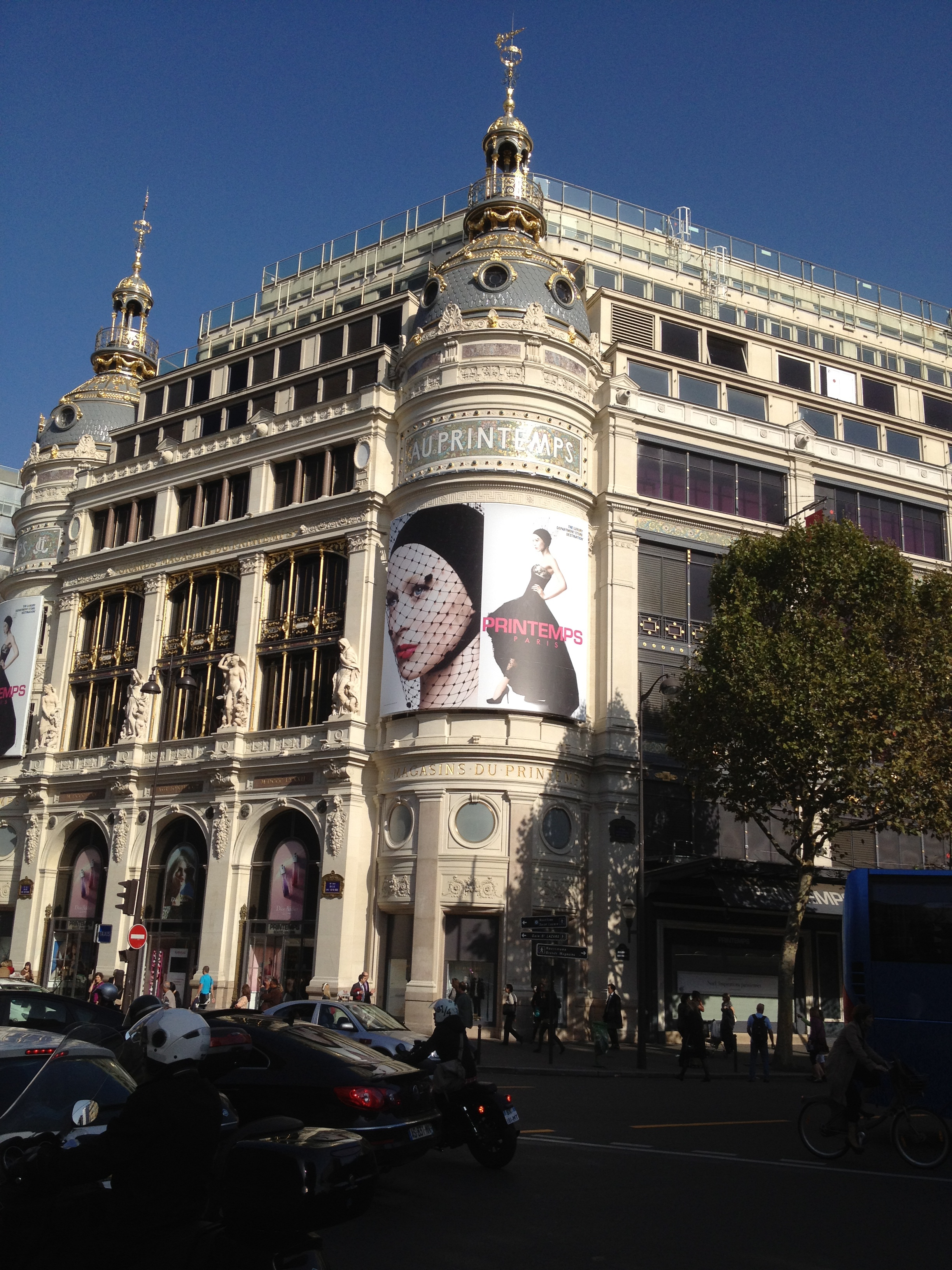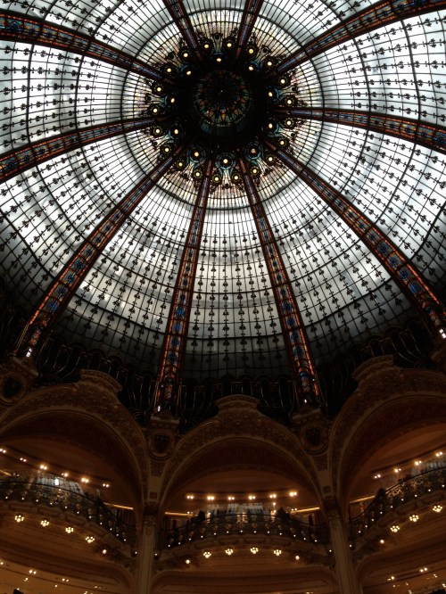 Several weeks ago I met a friend for lunch under the gorgeous dome of Printemps department store, which is a 30 minute walk from my apartment. The restaurant was so lovely, I couldn’t wait to share the pictures with you. But then for some reason, I did wait. In fact, I waited so long that I almost forgot about that nice day I spent wandering around that beautiful store, enjoying a delicious lunch, and then joining a walking tour before heading back to watch the Biggest Fashion Show In The World. It was a good day in Paris.