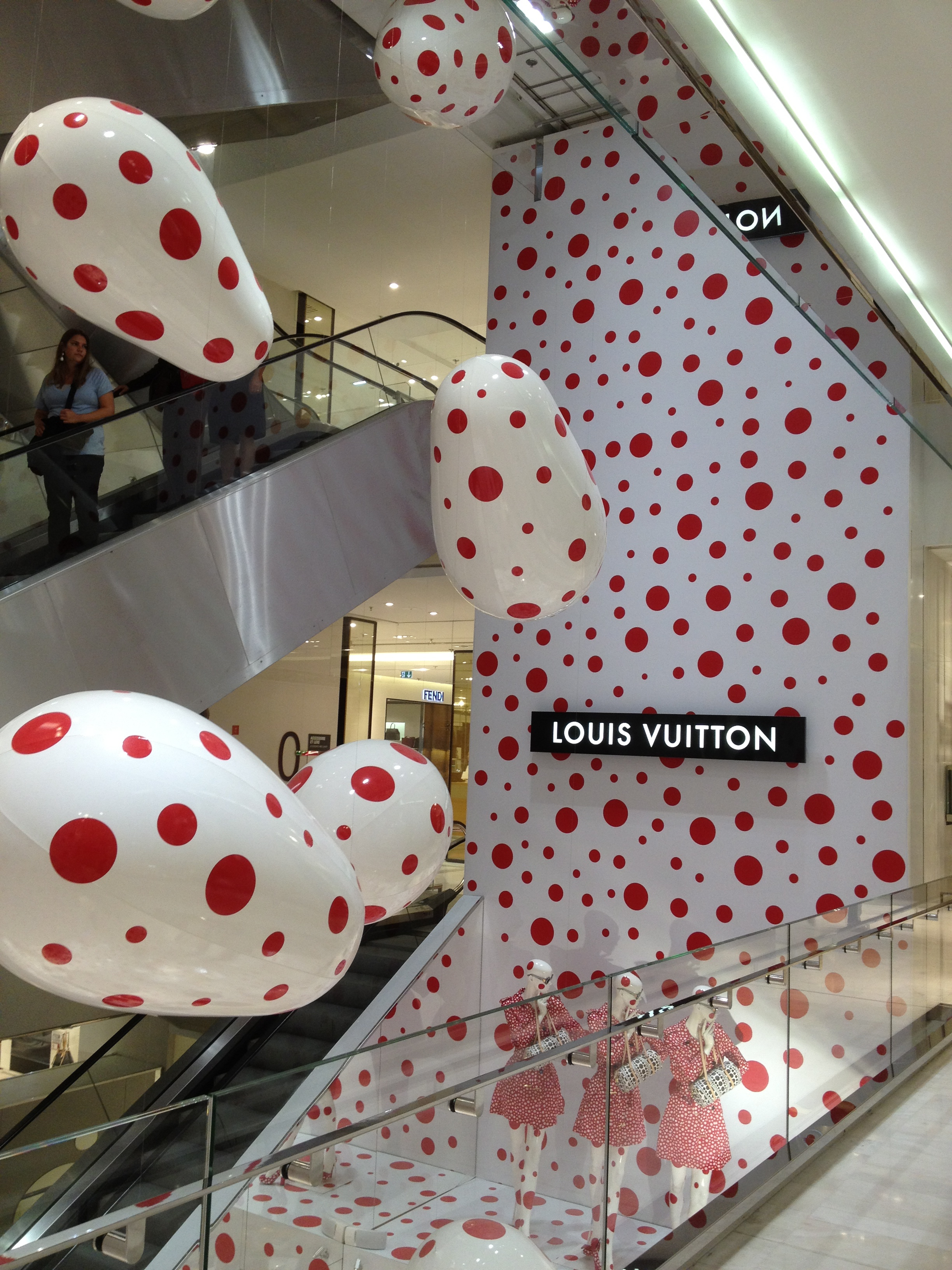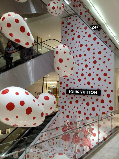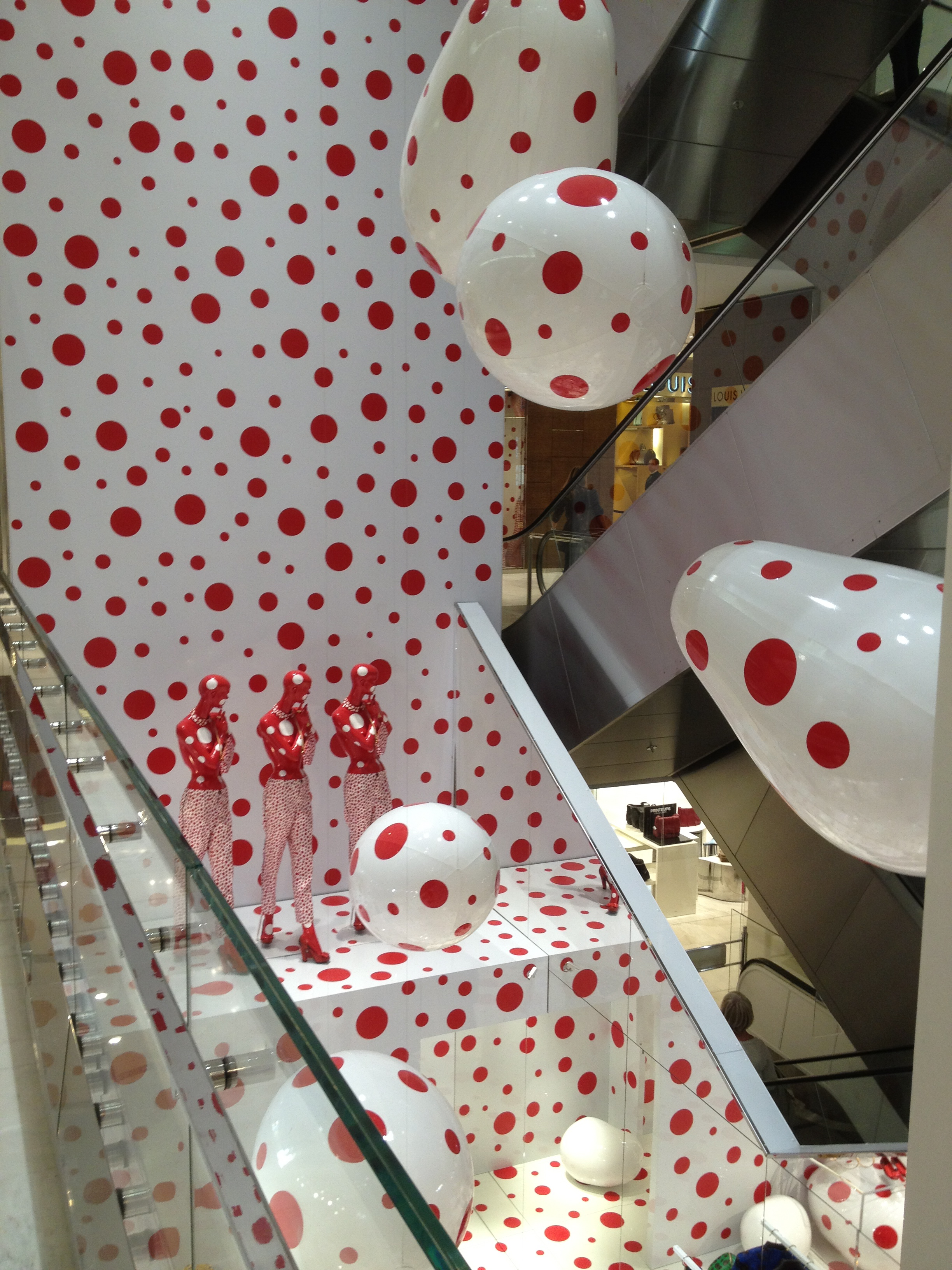 Love the photo of the mirrored table! That was one of my favorite places that Patrick and I went to – so exquisite. I can’t figure out how I feel about LV’s new ads – It’s definitely unique. Looks like art by Yoyoi Kusama maybe? Miss you!
