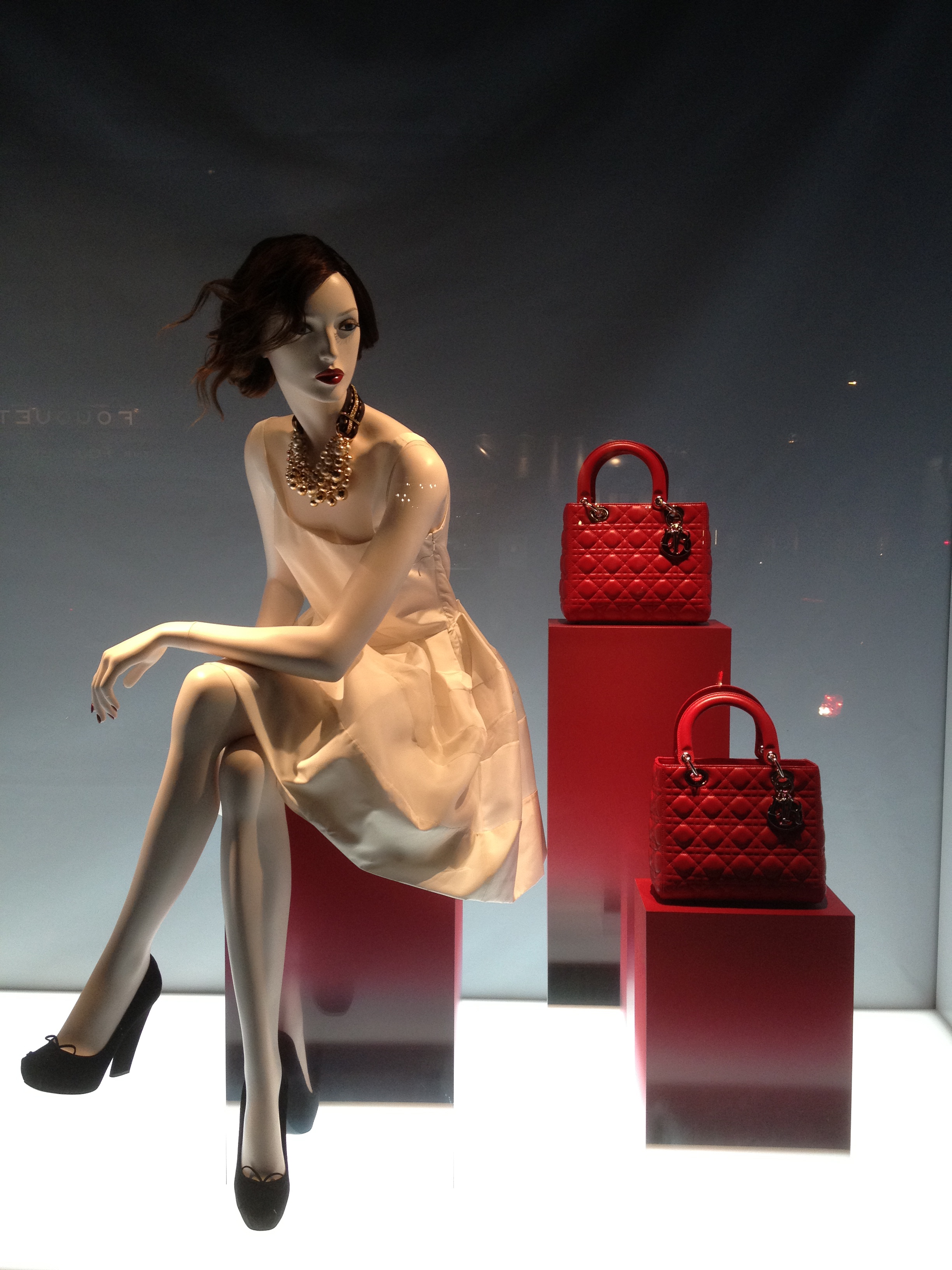 It seems like a long time since we strolled down Avenue Montaigne (= Paris’ Rodeo Drive) to see what treasures the windows were holding. Shall we?