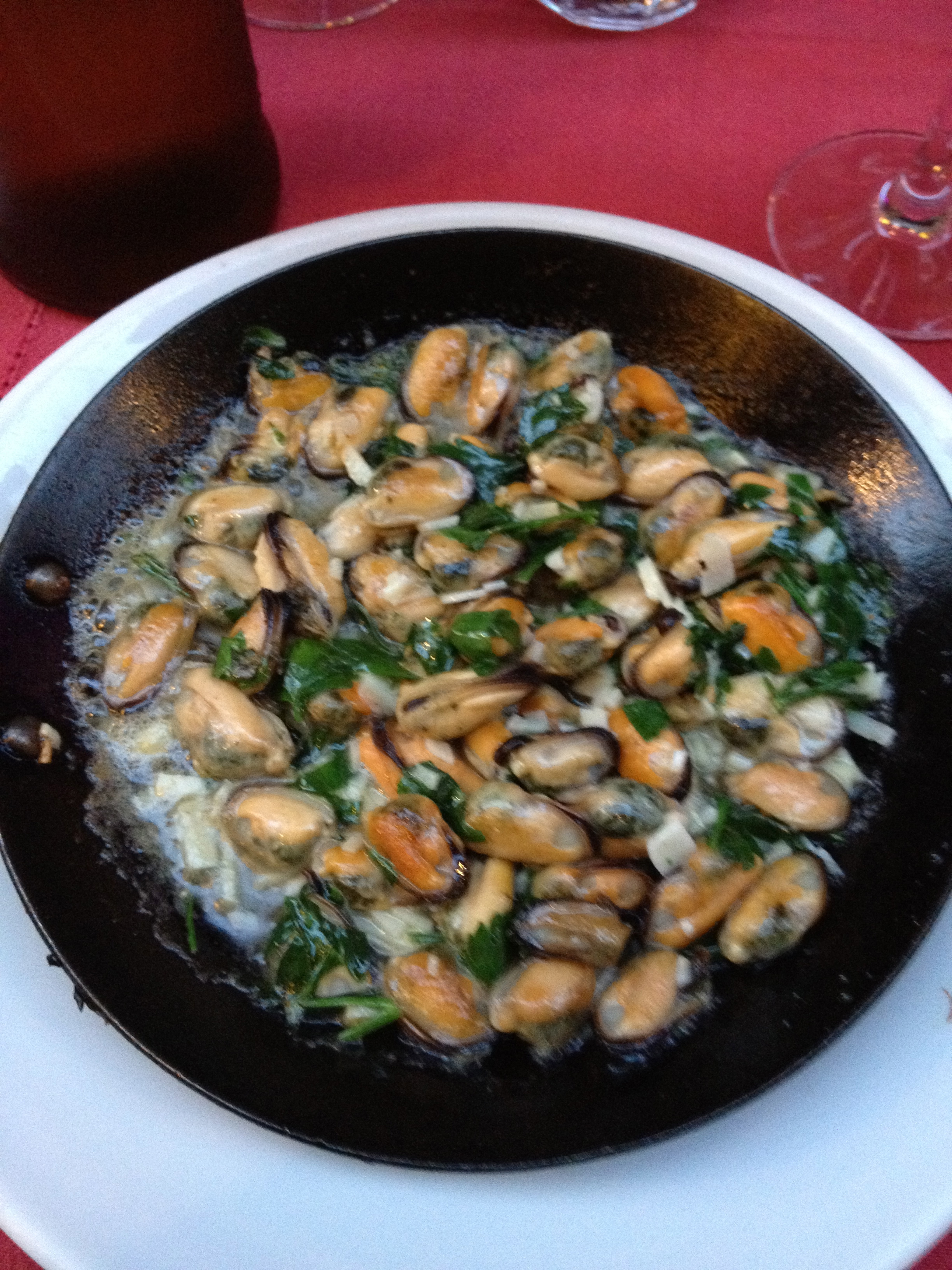 I had tiny mussels swimming in garlic, olive oil, and parsley.