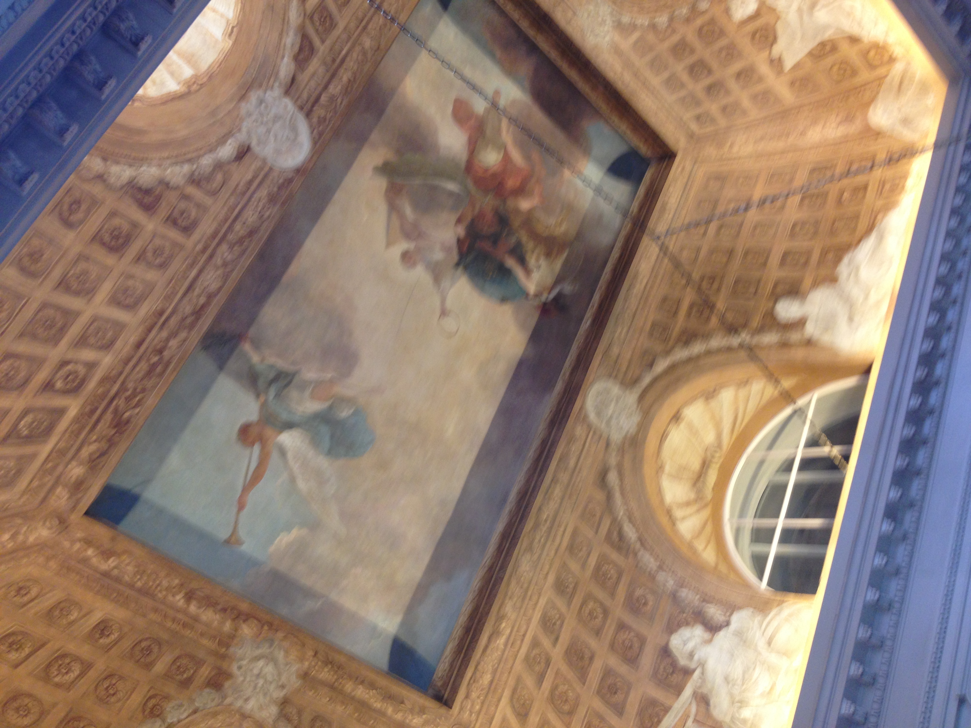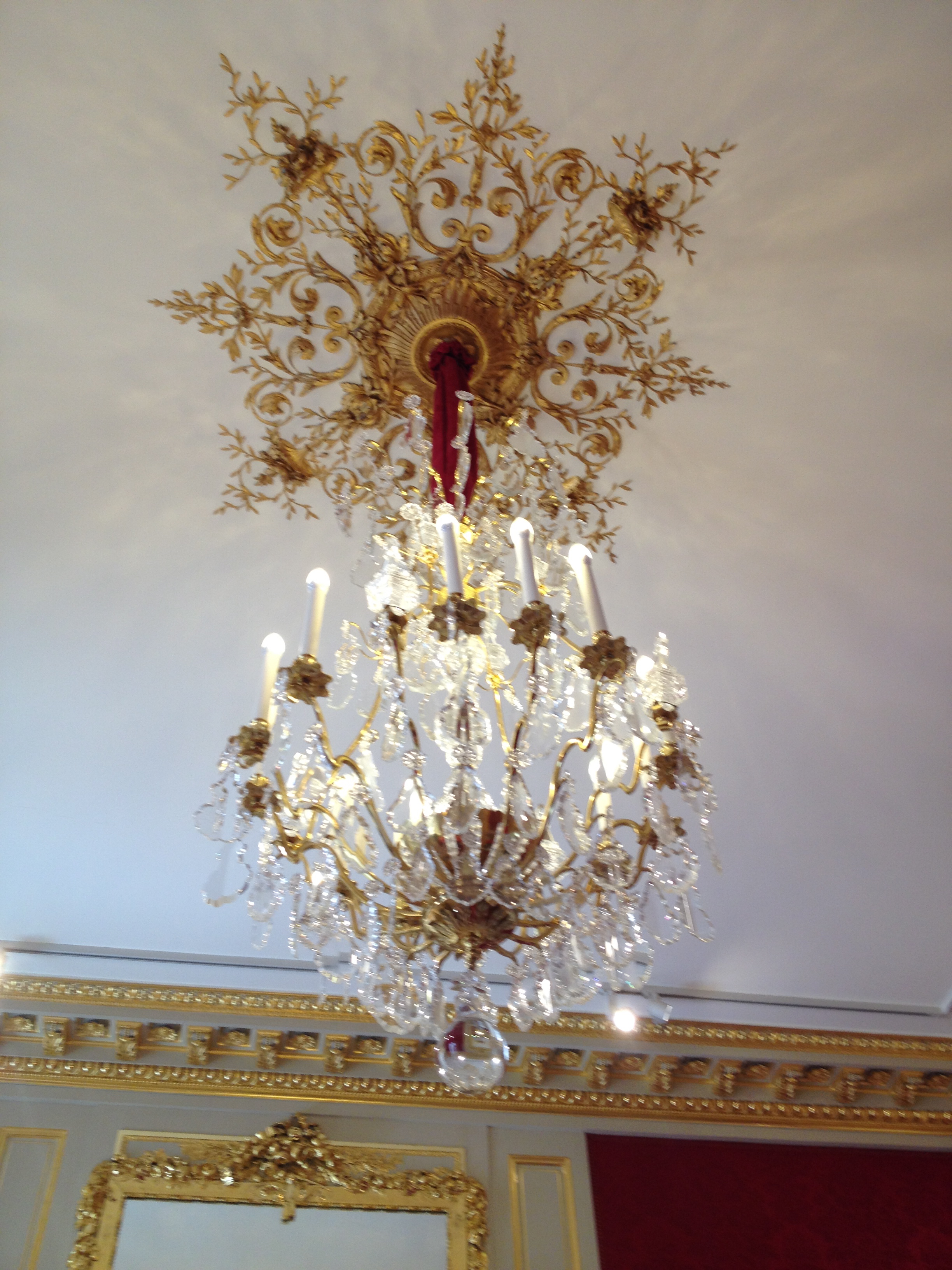 The first Sunday that The Ladies were in Paris coincided with “Heritage Days” in France, the one weekend a year that a variety of well known but usually out of bounds historical monuments are open to the public. We rode the bus to Madeleine and then walked over to the “Hotel de Tallyrand”, which sits in a prime spot just off the Place de la Concorde. This gorgeous townhouse was built in 1767-1769 for a close friend of King Louis XV. It was purchased by the Rothschild family in 1838, was requisitioned by the Vichy government and then the Nazis, and then was sold to the U.S. Department of State in 1950. The mansion was the home of the administration of the Marshall Plan and is still owned by the U.S. State Department. The home underwent a major restoration from 2000-2010, and is a glittering example of neo-classicism.