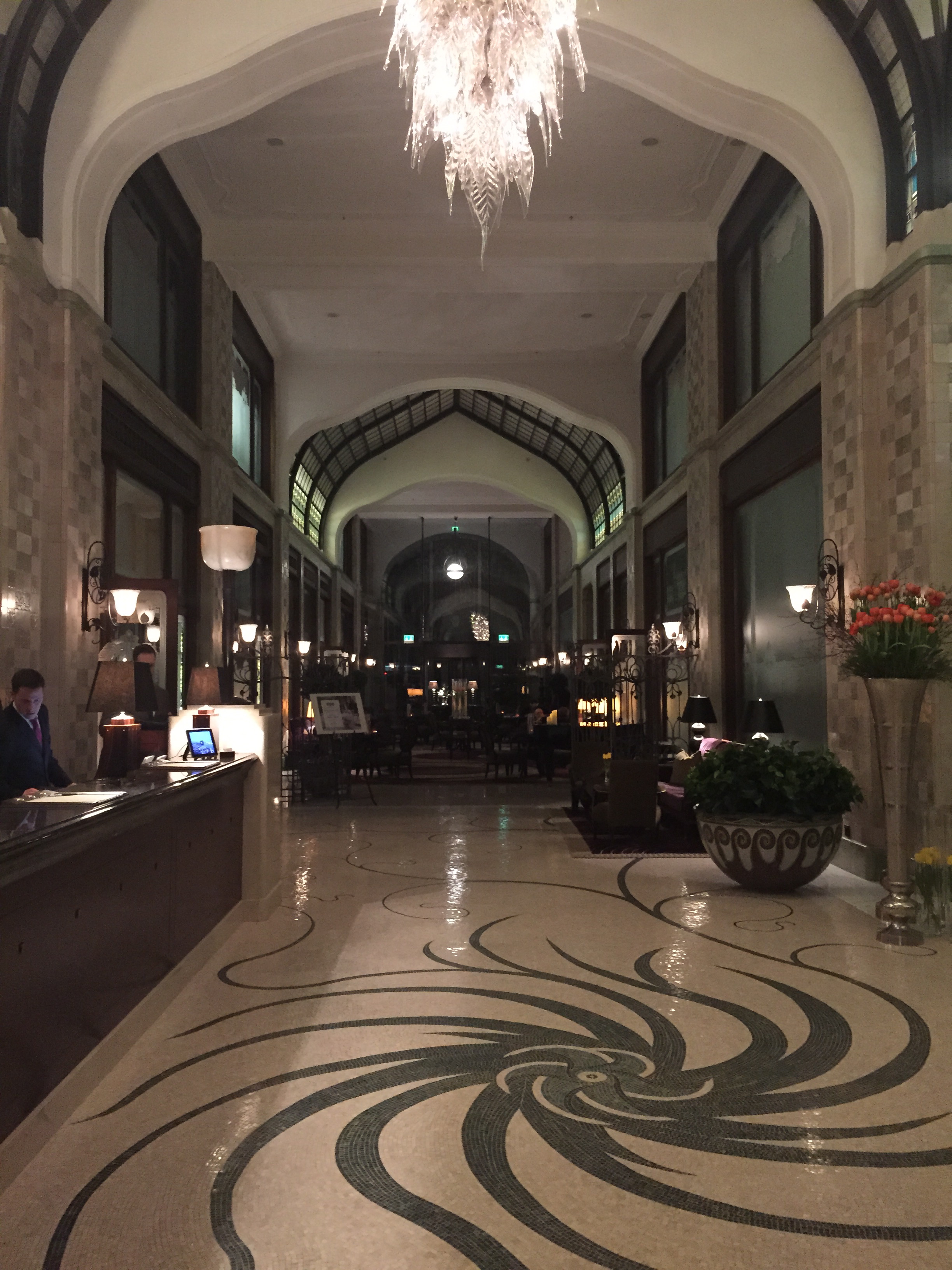 The best part was there was no smell of sulphur- just clean, warm, bubbly water. So glad that Rick talked us into going. Another nice indulgence, though not nearly as adventurous, was evening cocktails at the Four Seasons Gresham Palace. This gorgeous Art Nouveau building has been beautifully restored. We didn’t venture beyond the bar and the bathrooms, but both were really nice.