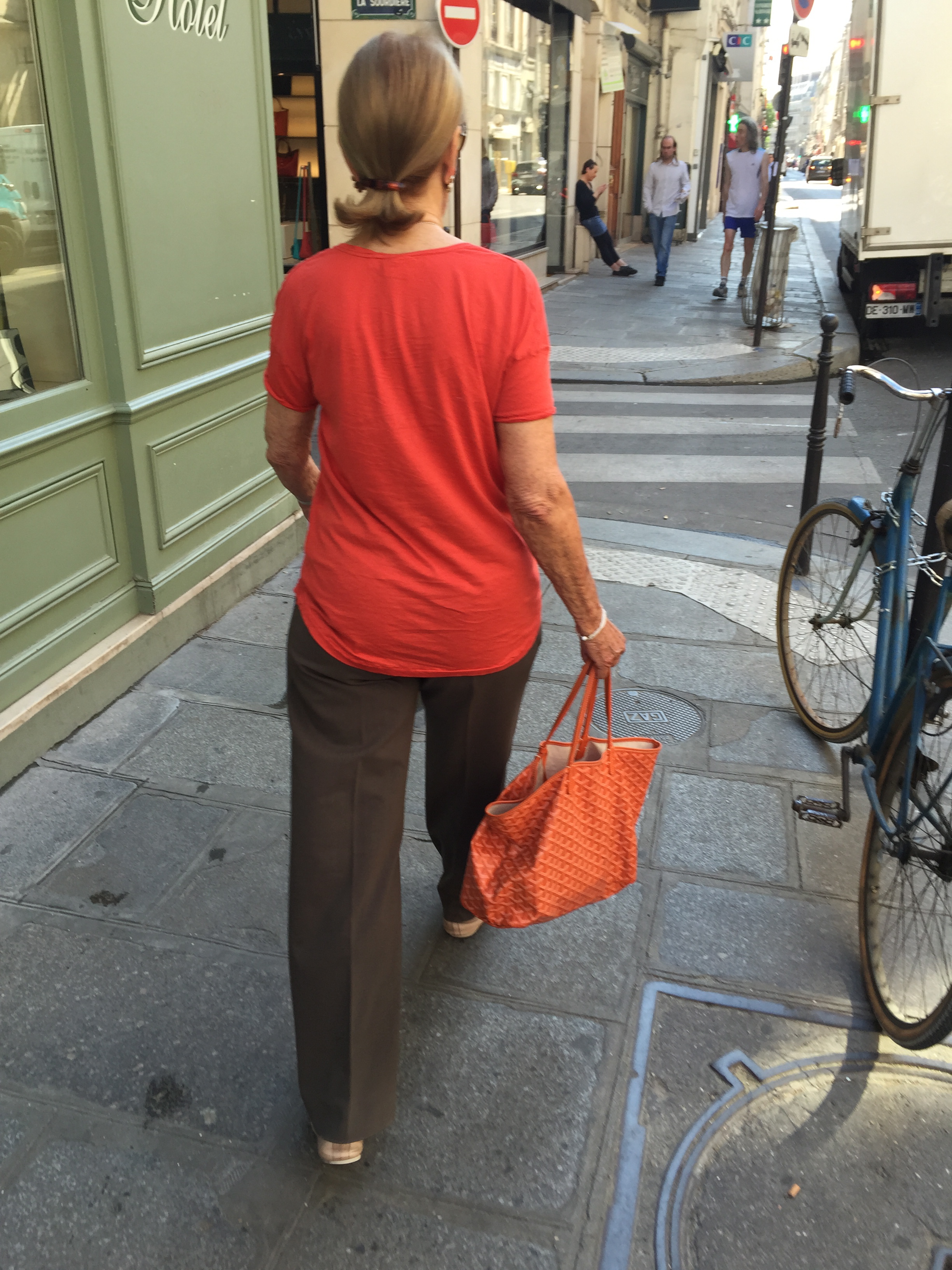 This woman opted for an orange Goyard, a color choice I particularly applaud.