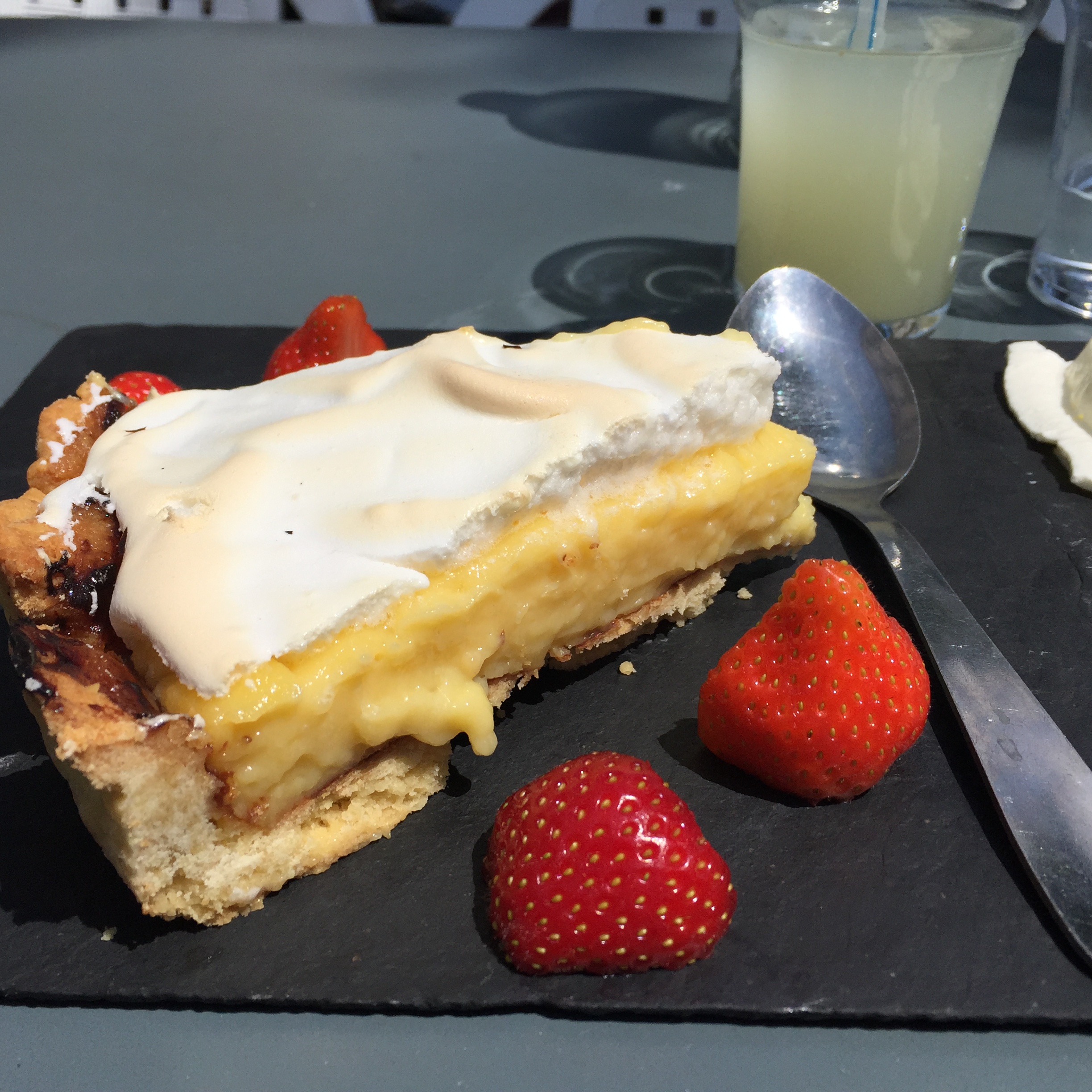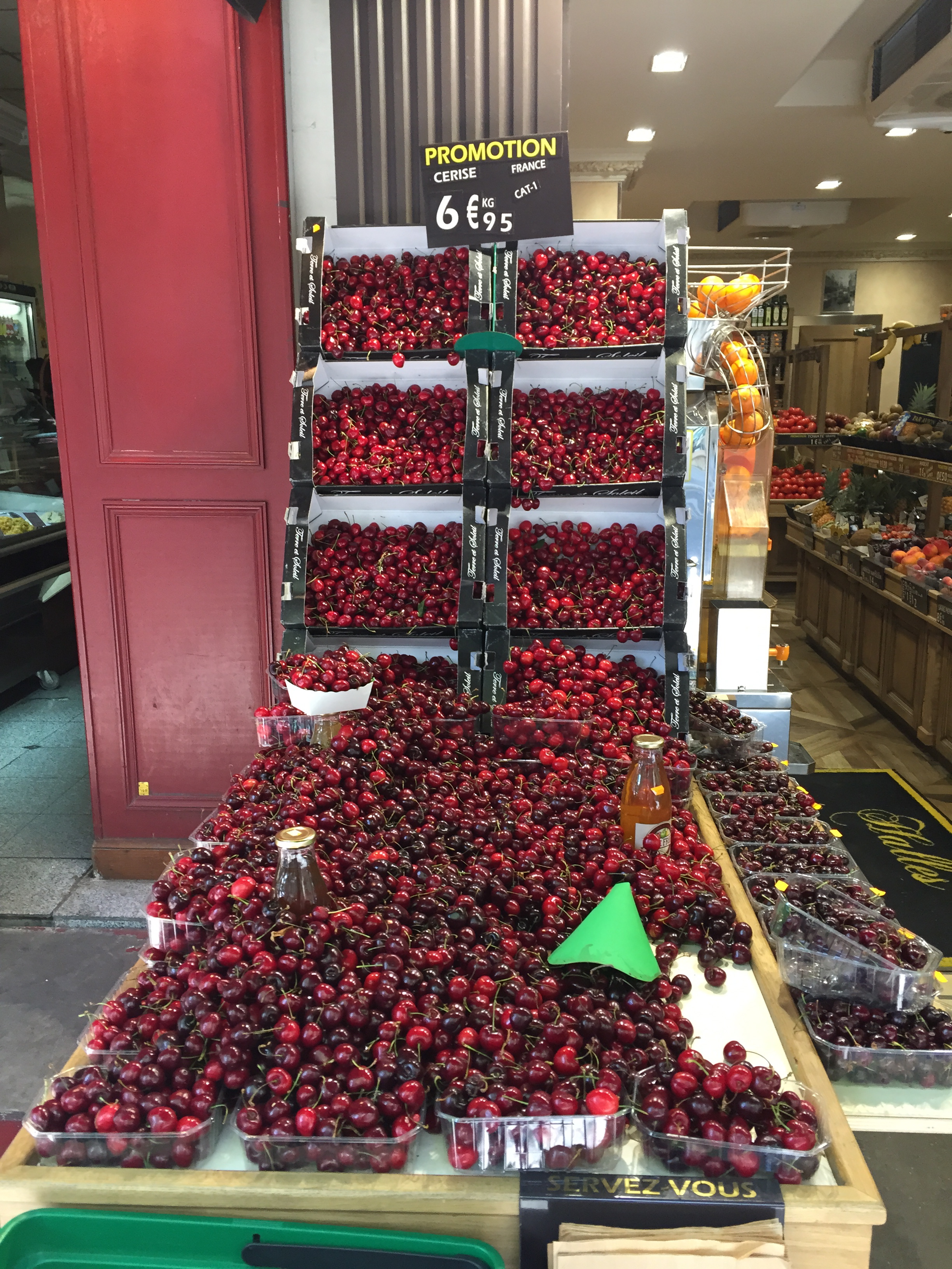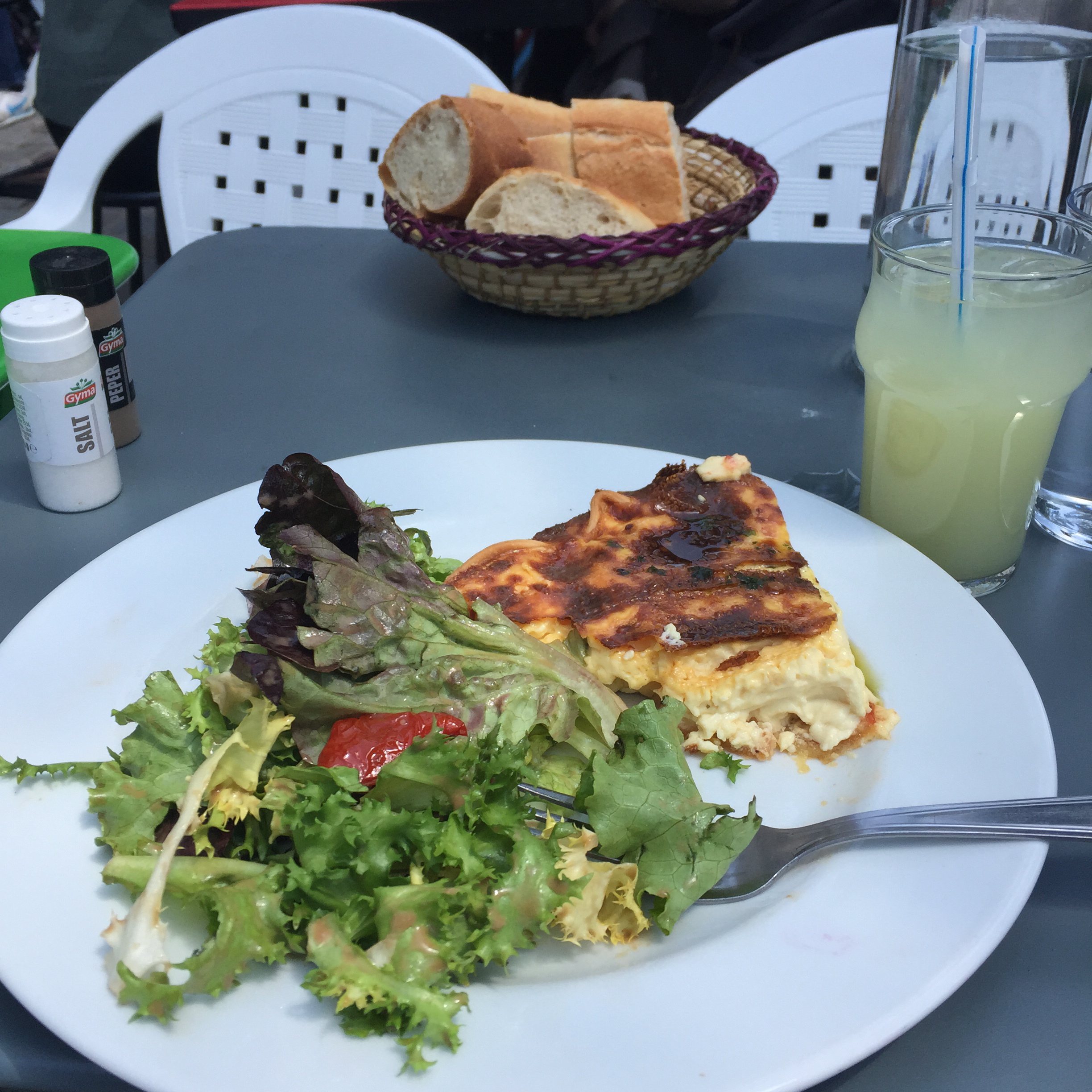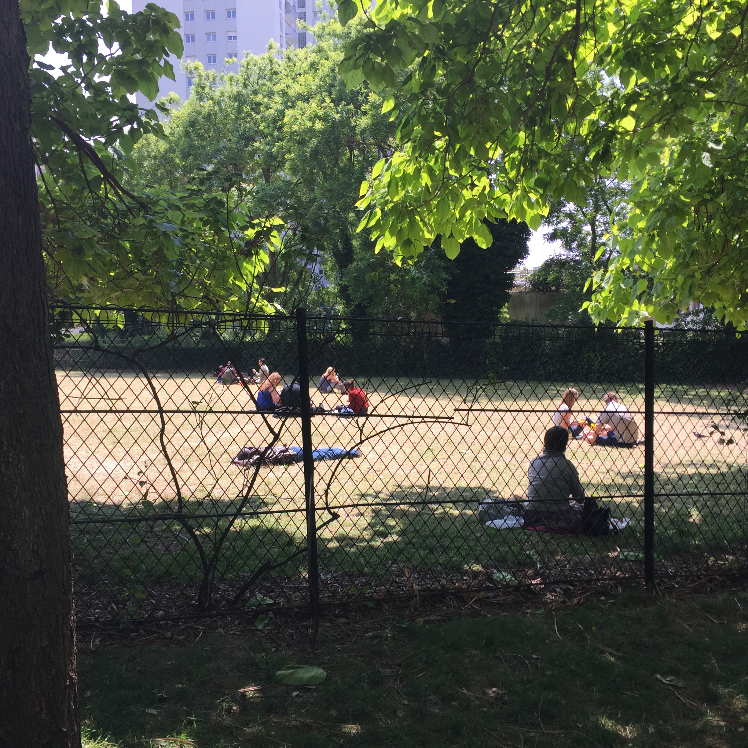 My first stop was Parc de Belleville. This relatively new park (I think it was opened in 1988) is built into a hillside and is a series of shady paths traversing the hill and stairs going up and down. It was serene on that late morning, with only a few people occupying shady benches and a small group of sun-worshippers having lunch in an open yard. IMG_2397 IMG_2395 IMG_2399 The park was nestled right up against apartment buildings, whose residents no doubt enjoy the view as well as the prime picnic opportunities. IMG_2398 IMG_2400 IMG_2401 And the view!! IMG_2402 Just outside a park exit was this inviting little cafe with a shady terrace. IMG_2407 I took a seat at one of the colorful tables and ordered the cheese and tomato tart. IMG_2403 IMG_2404 And then this happened. Don’t judge. I was climbing hills. I needed my strength. IMG_2405 Just across the street was this adorable building anchored by a boulangerie. I fantasized about living on the top floor. Yes, I would have been able to touch both sides of the apartment at the same time, and my bed would have to be placed diagonally. But I could rig a basket onto a rope pulley and send my money down and then pull a warm baguette or croissant back up through my window! And then I could eat them while admiring my view of the Eiffel Tower. How sweet would that be? IMG_2406 After that lunch, I had some walking to do. IMG_2409 IMG_2410 IMG_2413 I walked a long way up Rue Gambetta, which begins with this gorgeous Art Deco metro station. IMG_2414 IMG_2415 This street borders one side of the Pere Lachaise cemetery and offers a beautiful shady walk. IMG_2416 IMG_2396 IMG_2417 IMG_2419 IMG_2420 The street is also home to many elementary schools like this one. Each has a marble plaque commemorating the Jewish children who were removed from the schools and taken to camps with the cooperation of the Vichy government. It is difficult to visualize those scenes, how terrified and confused those poor children had to have been. IMG_2418 IMG_2424 IMG_2425 IMG_2427 I did not go to Place Sainte-Marthe on this trip to Belleville, but one of our very favorite restaurants is found there, Le Galopin. It’s well worth a trip off the beaten path the next time you are in Paris.