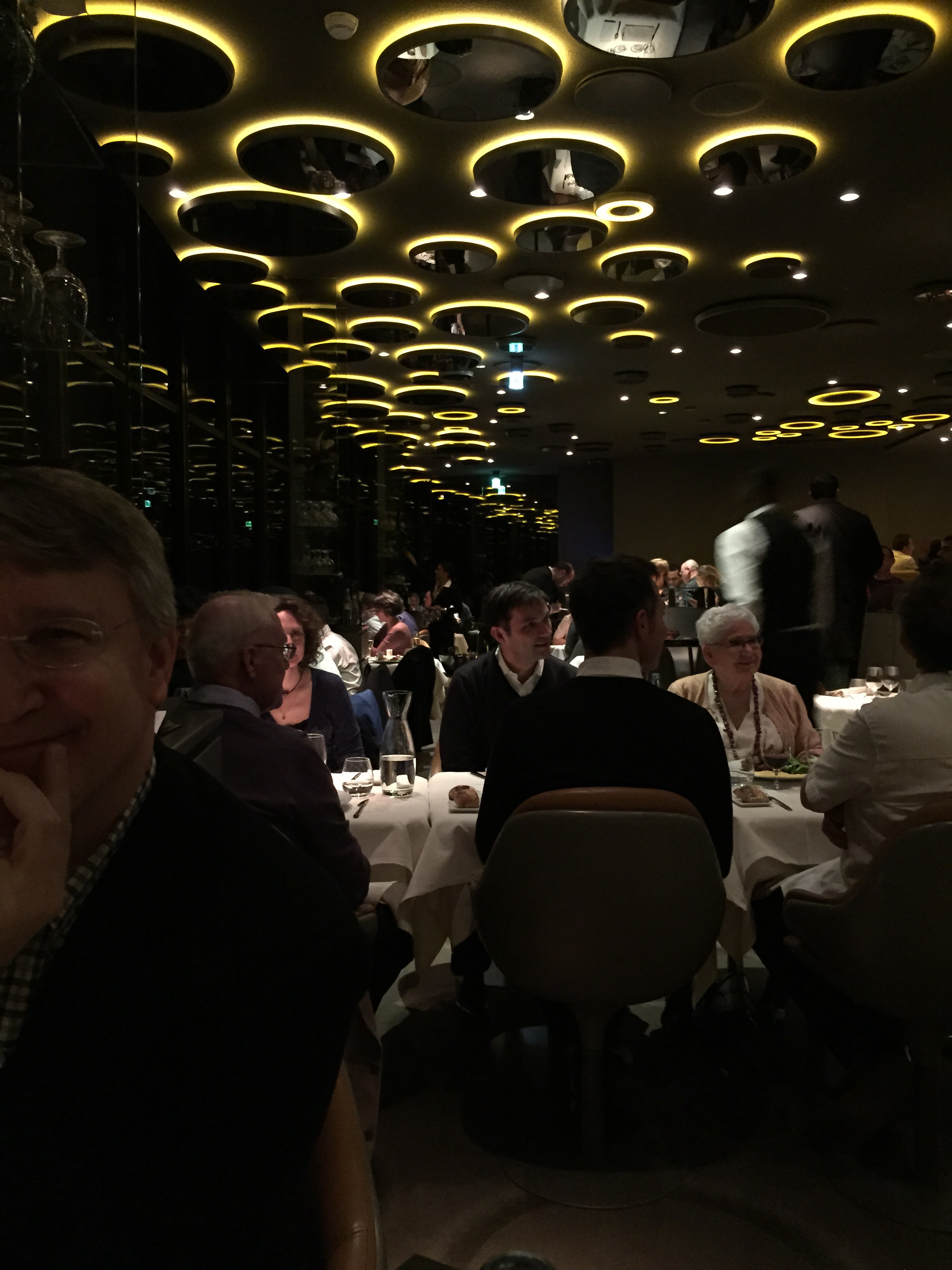 Having experienced a tip-top view of Paris by day, we decided to try a night-time view from the restaurant at the top of the Montparnasse tower, Le Ciel de Paris. Mark and I had never been up there and were curious about the restaurant and bar with a view that included the Eiffel Tower. I must say that my expectations were exceeded by our dinner experience. The service was professional and friendly, the atmosphere was elegant, the food was good, and the view was prime.