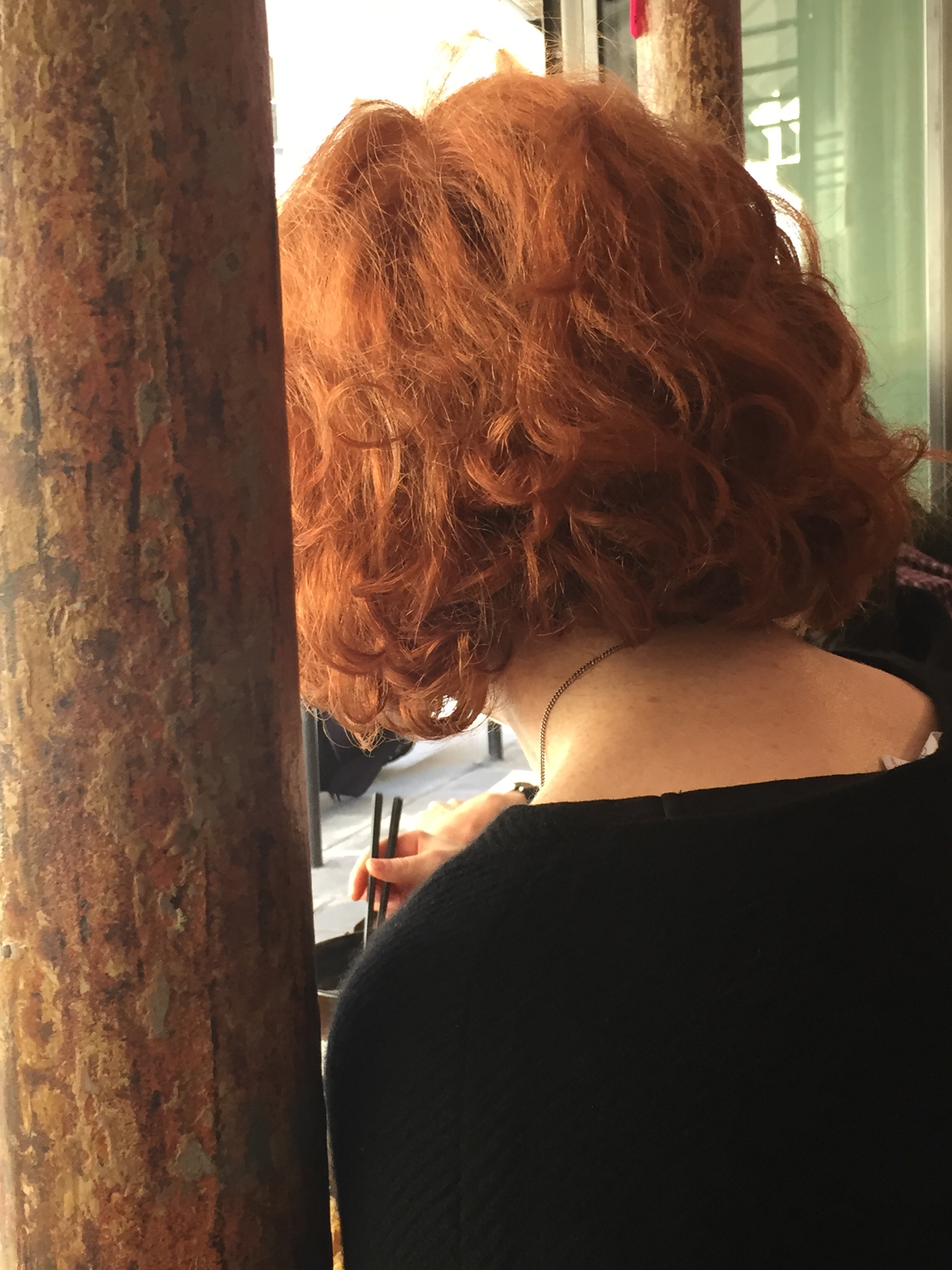 My neighbor was sitting very close to me, which made it easy for me to admire her gorgeous red hair. Is that weird?