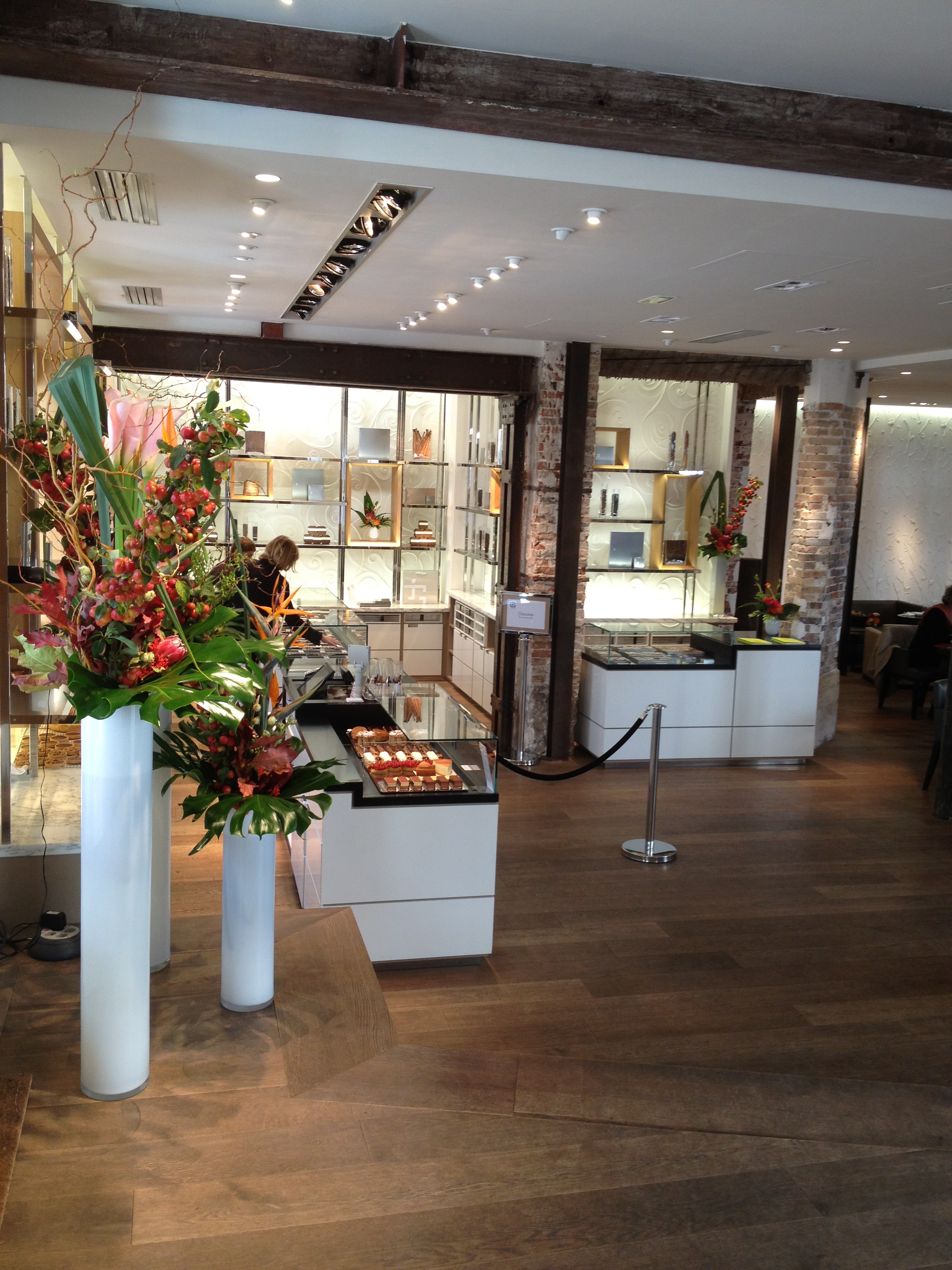 First stop was a drop-dead gorgeous chocolate/caramel/pastry shop, Jacques Genin, that I have been dreaming about since David Lebovitz described it here. If you read his post you will totally understand why I was skipping down the street in the Marais, happy to finally be entering this realm of deliciousness. What I really want to do is go there with a friend, get a coffee and a pastry, sit down at a table, and enjoy the surroundings and the sweets. This time, however, I wasn’t hungry and I didn’t have a friend, so my mission was a bag of the famous caramels to give to my hostess in Seville. And a bag for moi, because caramels do it for me in a way that chocolates never will. These were divine. I got half plain and half with pistachios. So good. I hope I can resist tearing into my hostess’s bag once mine is empty.