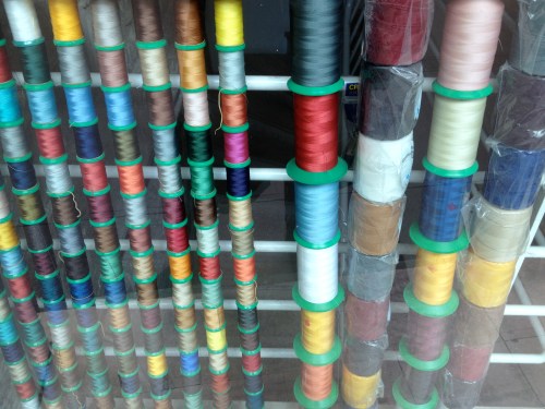 With my sweets in my tote (which I have learned to carry with me at all times, for those pre-meditated and unexpected purchases) I continued skipping down the sidewalks, congratulating myself for bringing an umbrella and no sunglasses, thus ensuring a bright and sunny day. This colorful window caught my eye.