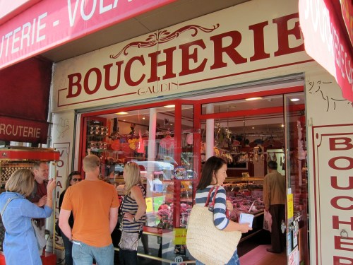 Last week I went on a food tour in Montmartre and we never even saw Sacre Coeur (or the Eiffel Tower), as we were deeply wound into the inner streets of the neighborhood. Our guide was a young American woman who used to write for Gourmet and then for Saveur magazine, who sent her to live in Paris, where she is connecting with local foodies and their myriad enterprises, like food tours. Not a bad gig, right? She said she chose to live in Montmartre because the apartment with the best kitchen was in that neighborhood, which makes perfect sense to me. She has clearly made it her home, however, and had friendly relationships with the shop owners who graciously welcomed our group of 6 into their small spaces. We learned about (and sampled) baguettes, croissants, olive oil, sausage, pate, pastries, cheese, butter, and wine. Yeah, it was a pretty OK day, I guess. If you’re into that kind of thing.