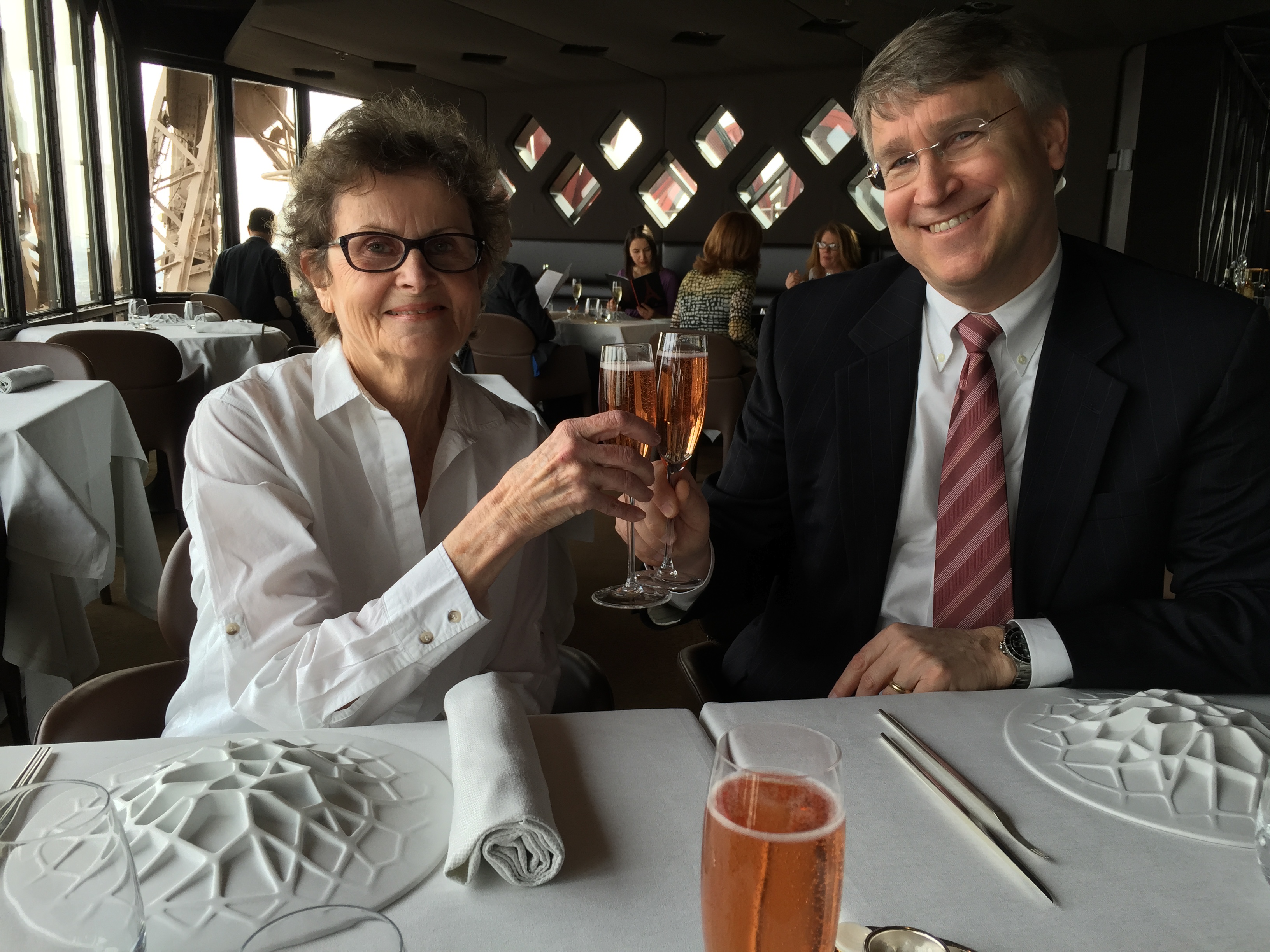 I have been fortunate to dine at the elegant Jules Verne several times, but had not been there in over a year. When my mother and niece were with us we thought it would be the perfect time to revisit the amazing Eiffel Tower restaurant and share it with them. This Alain Ducasse restaurant is located on the second platform of the tower, and is accessed by a private elevator.