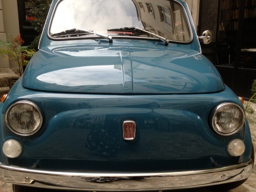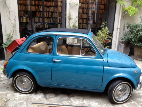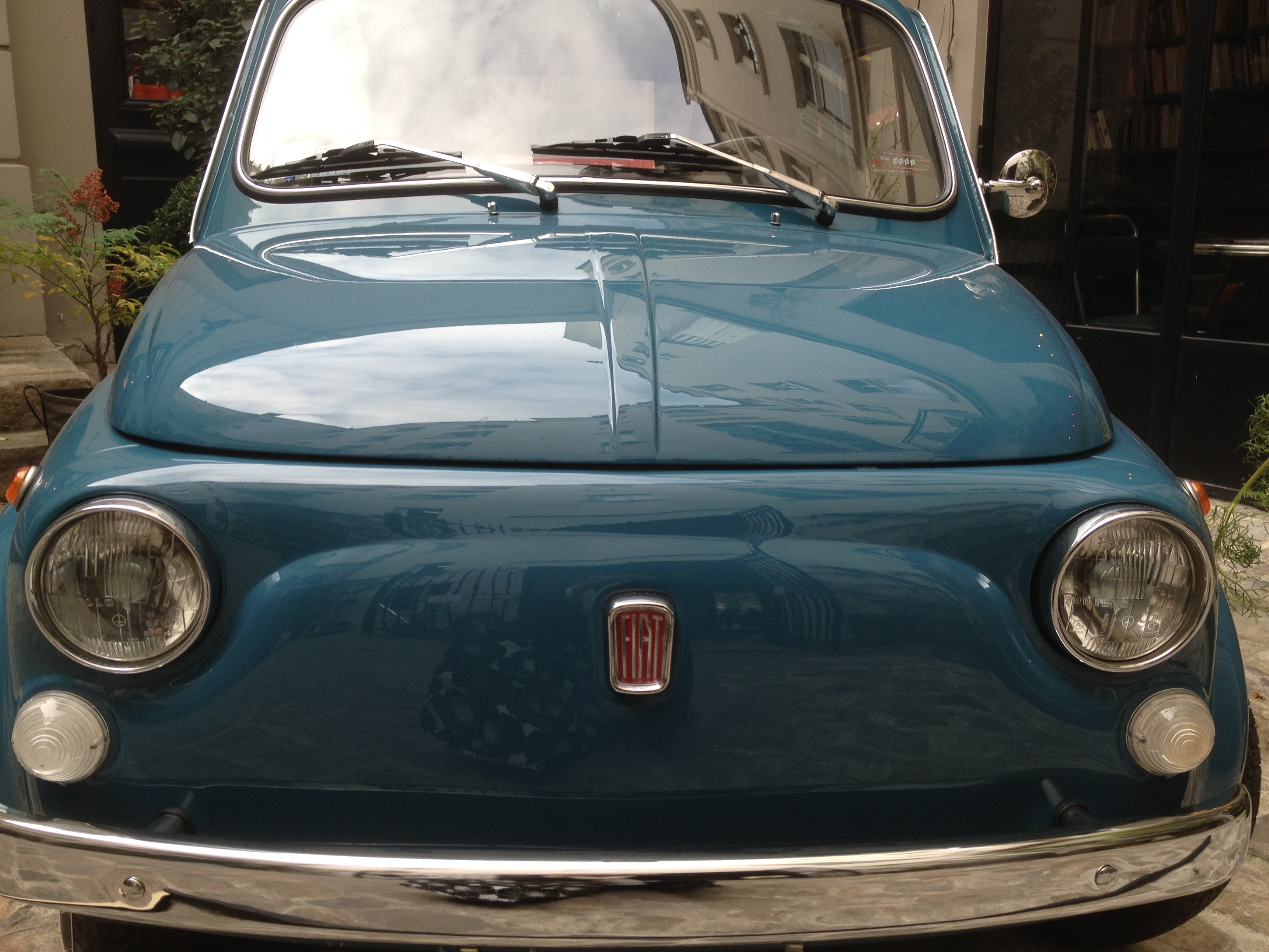 This Fiat 500 is part of the store’s decor. When I was there it was painted a gorgeous blue and toted a simple red suitcase on the back.
