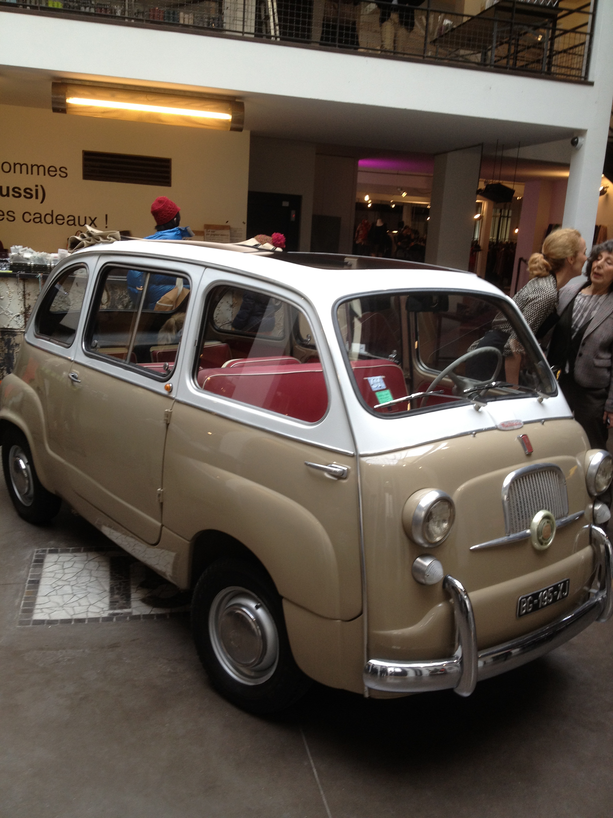 While the Fiat was in the courtyard just outside the entrance , this precious little mini-van was inside the store.