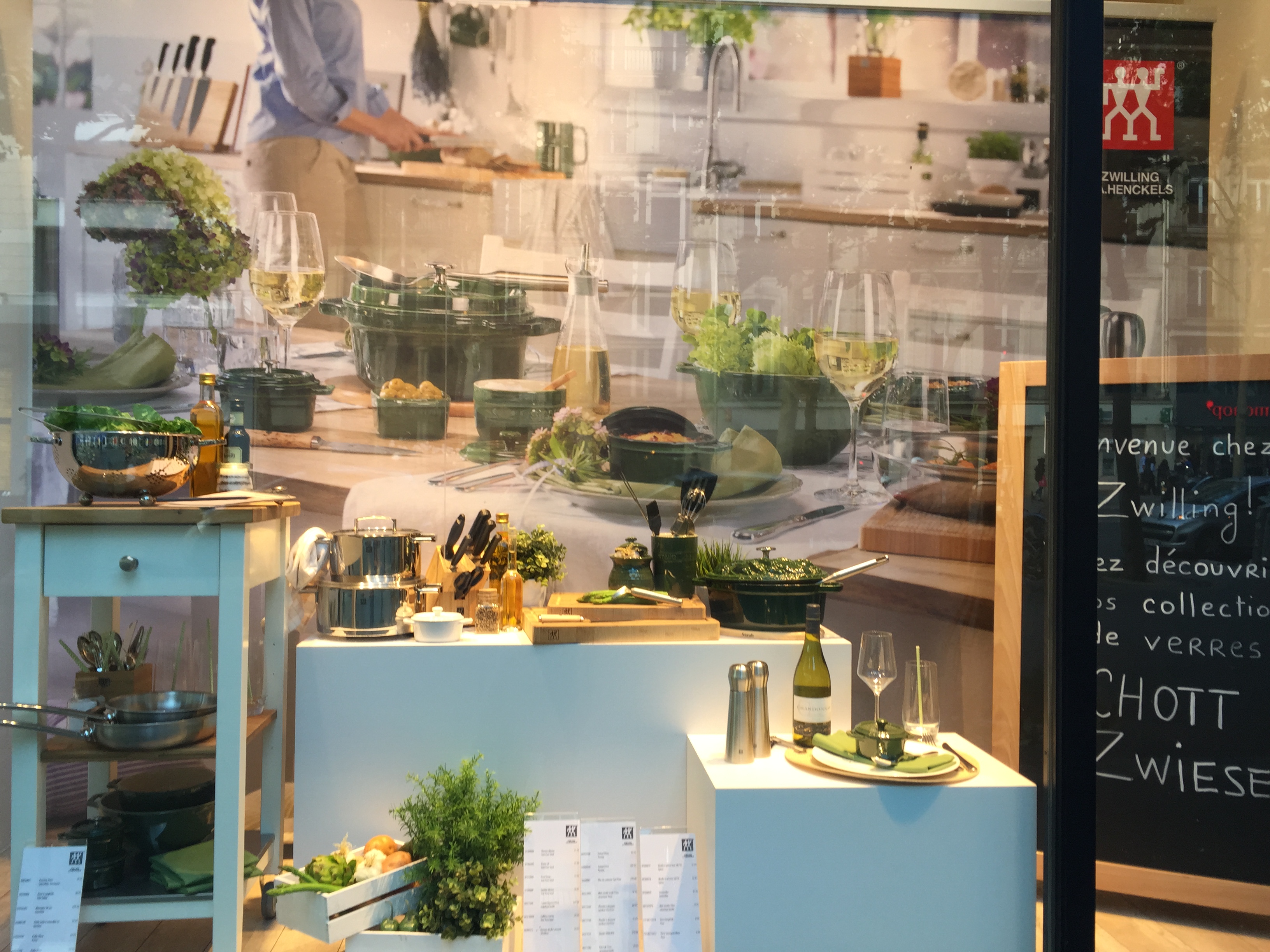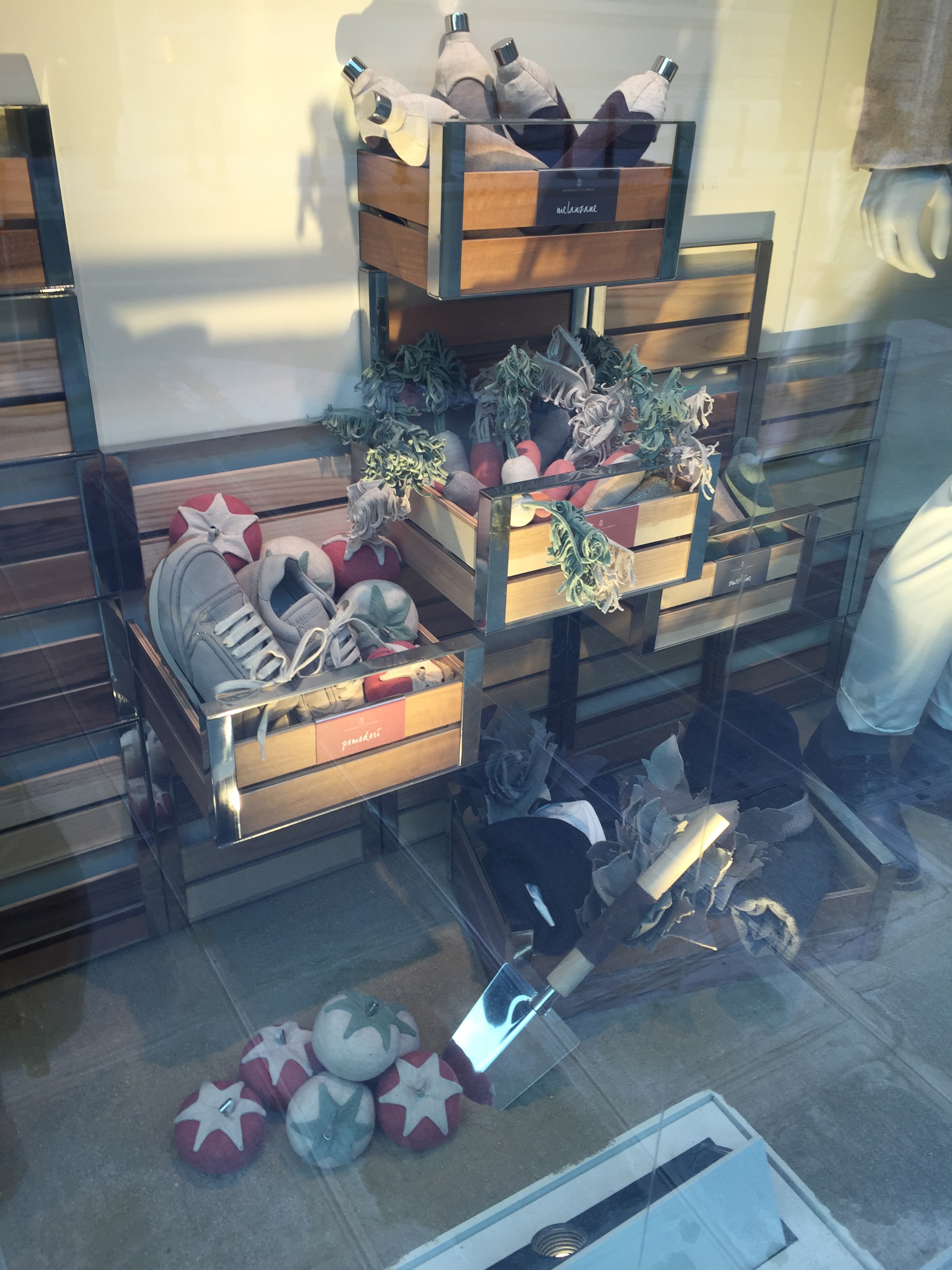 I have been admiring lots of store windows on my walks. I cannot ever capture them without glare, though, as the sun has been shining 14 hours a day for weeks. So just ignore the reflection, s’il vous plait.