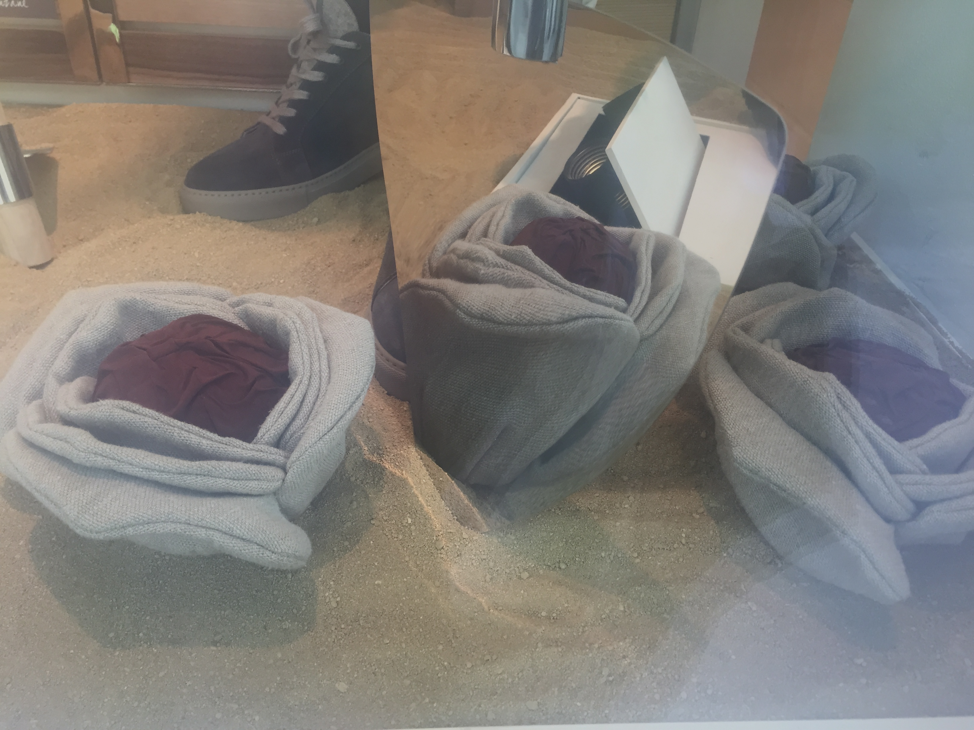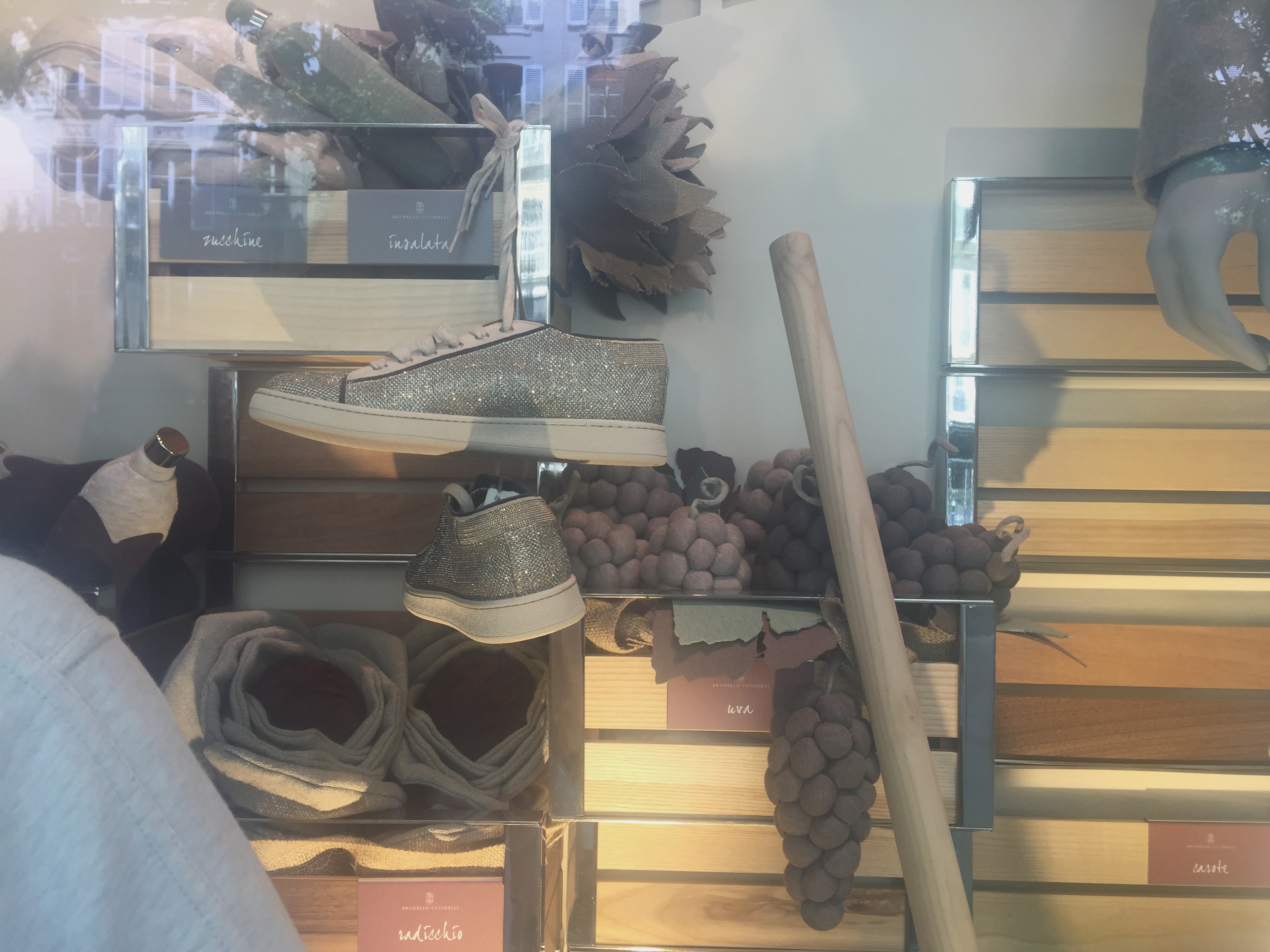 This store, Brunelli Cucinelli, always captures my eye with its creative windows. The theme this month appears to be summer gardens.