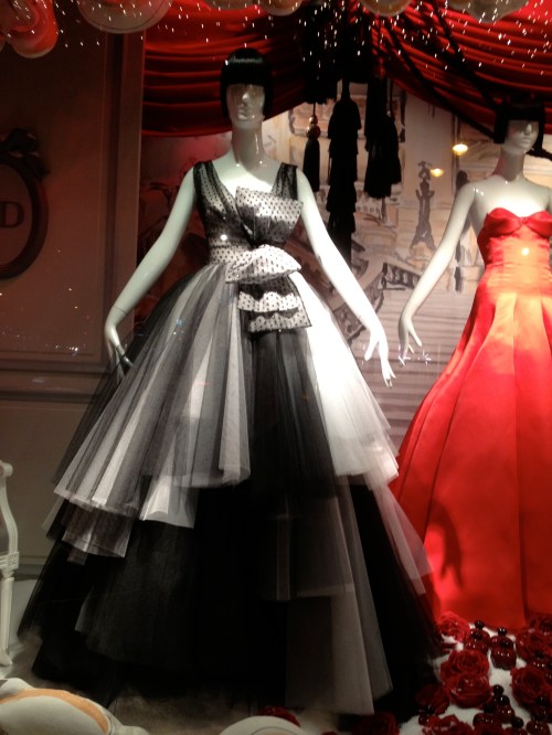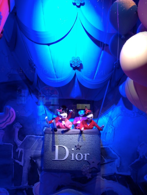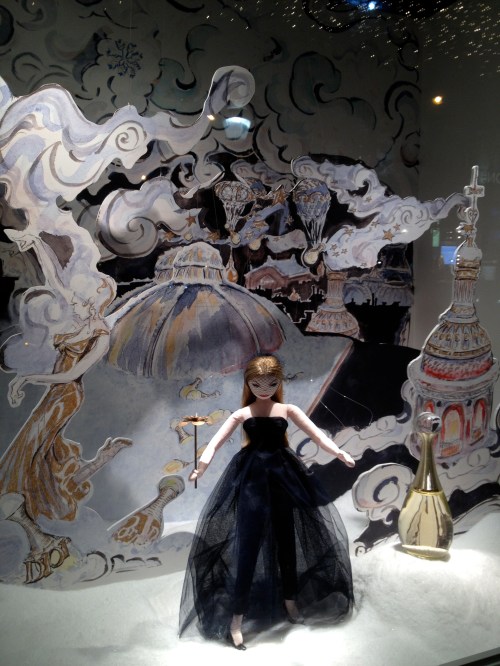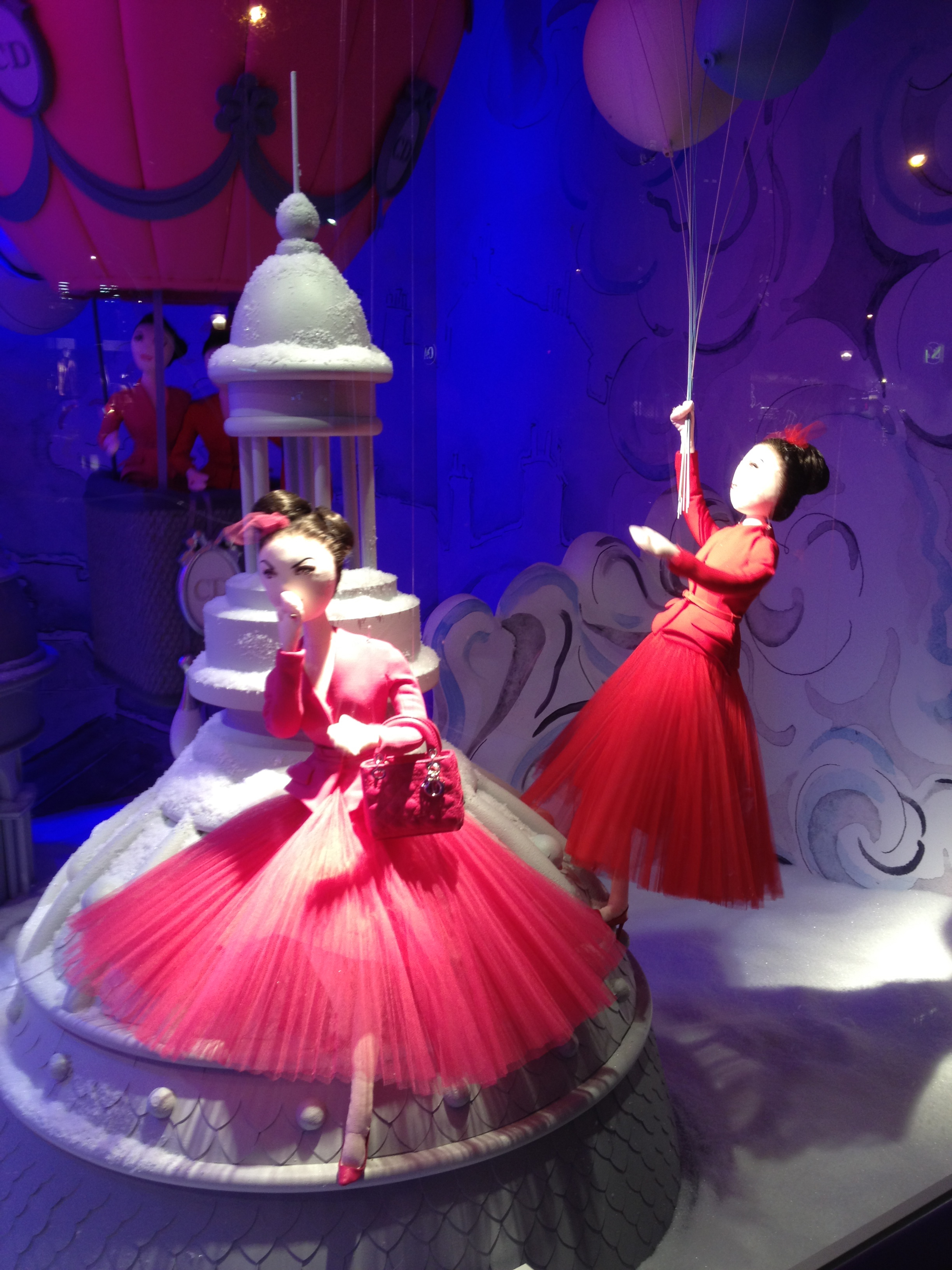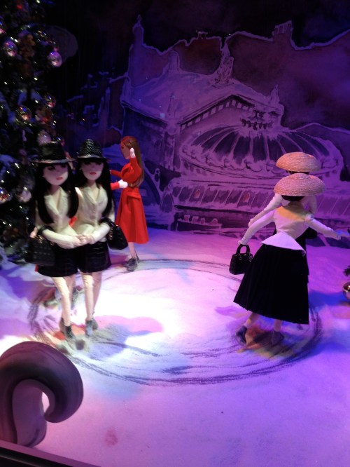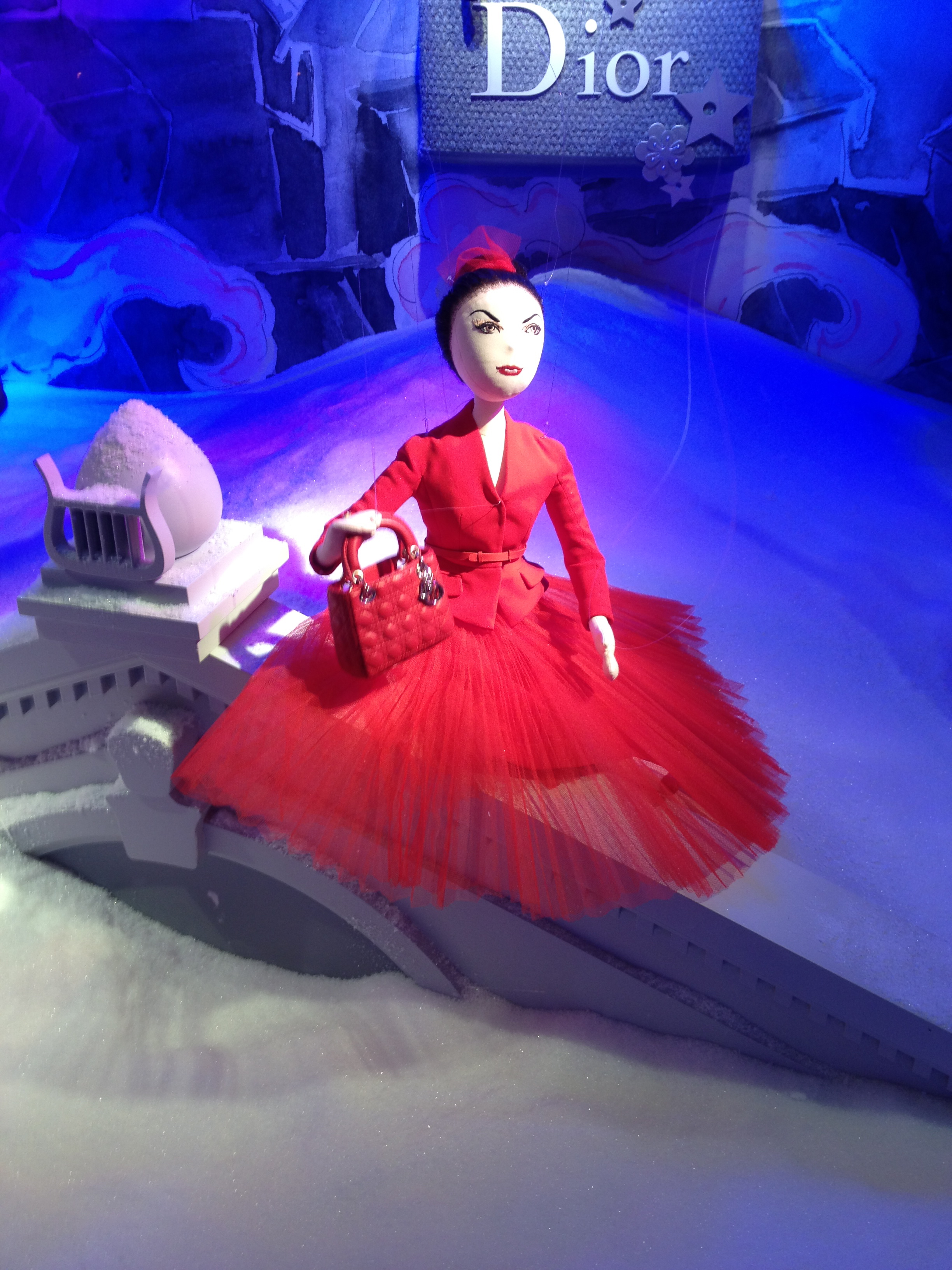 While Galeries Lafayette chose Louis Vuitton to design its dazzling Christmas windows this year, rival neighbor Printemps wore Christian Dior this season. And she looked absolutely stunning.