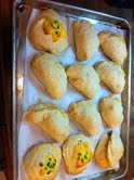 This morning I tried Homesick Texan’s Kolaches, but replaced the fruit filling with Lil Smokies, American cheese, and minced jalapeno, as my friend Martha suggested. They were pretty darned good for a beginner!