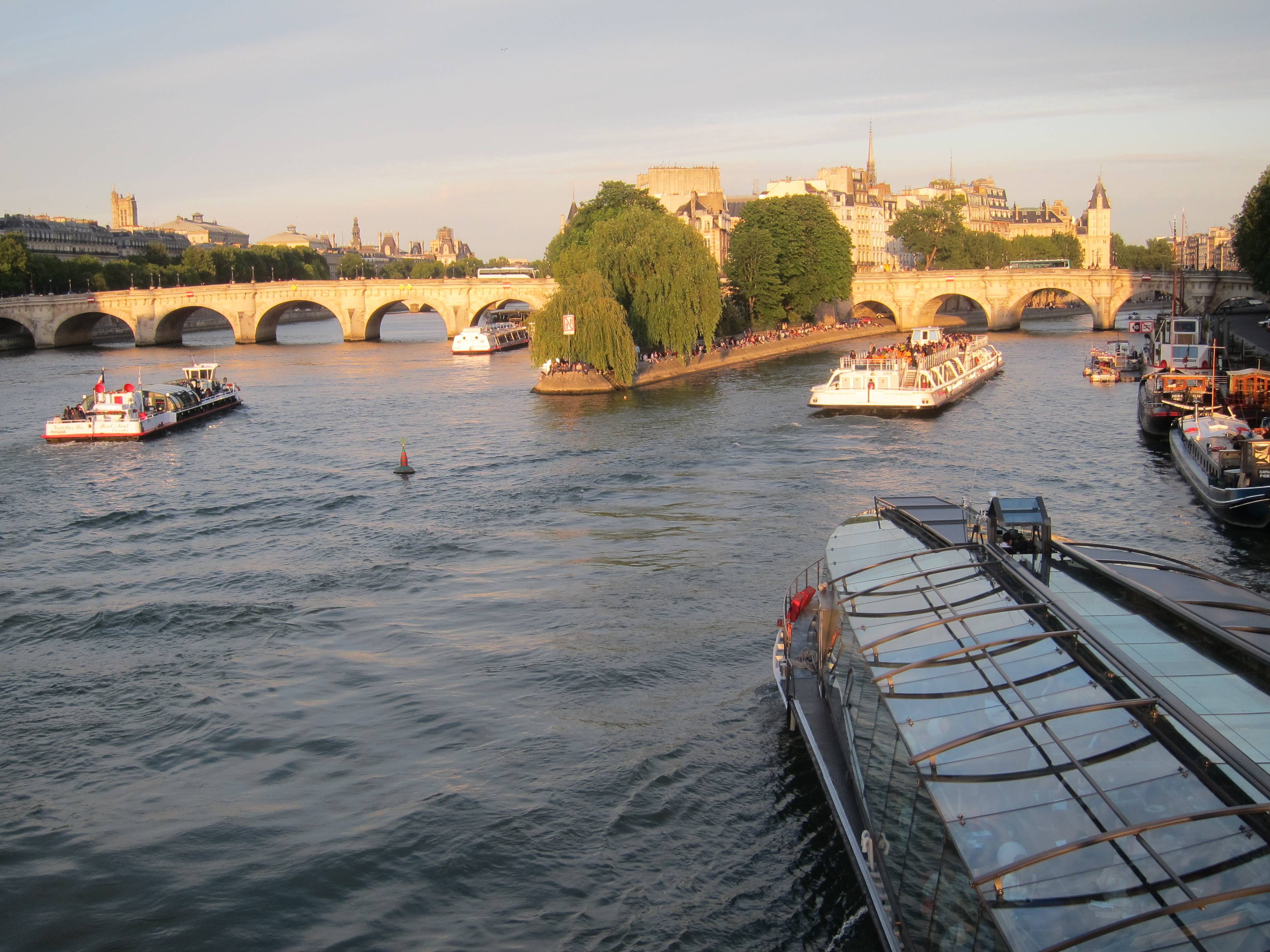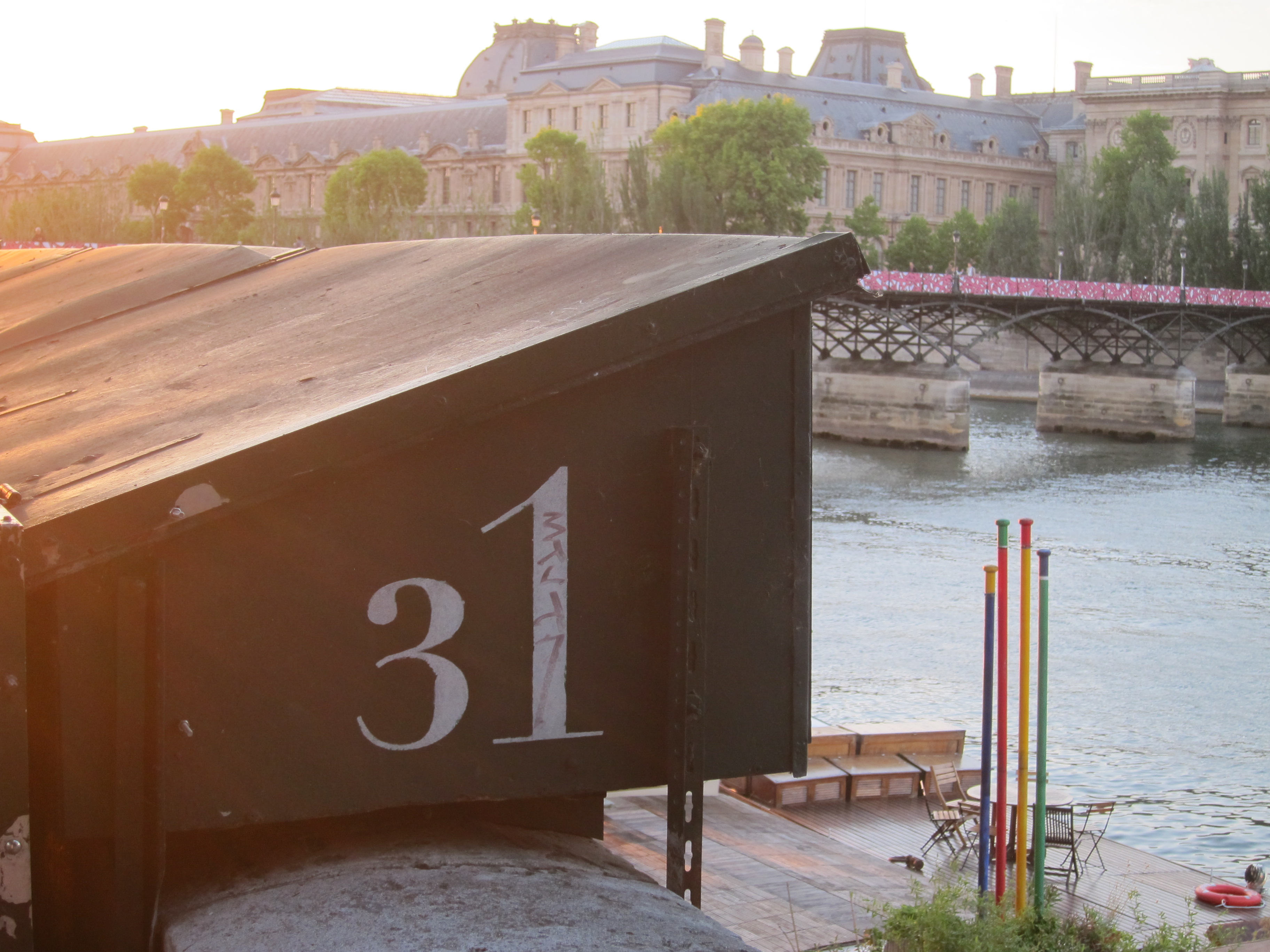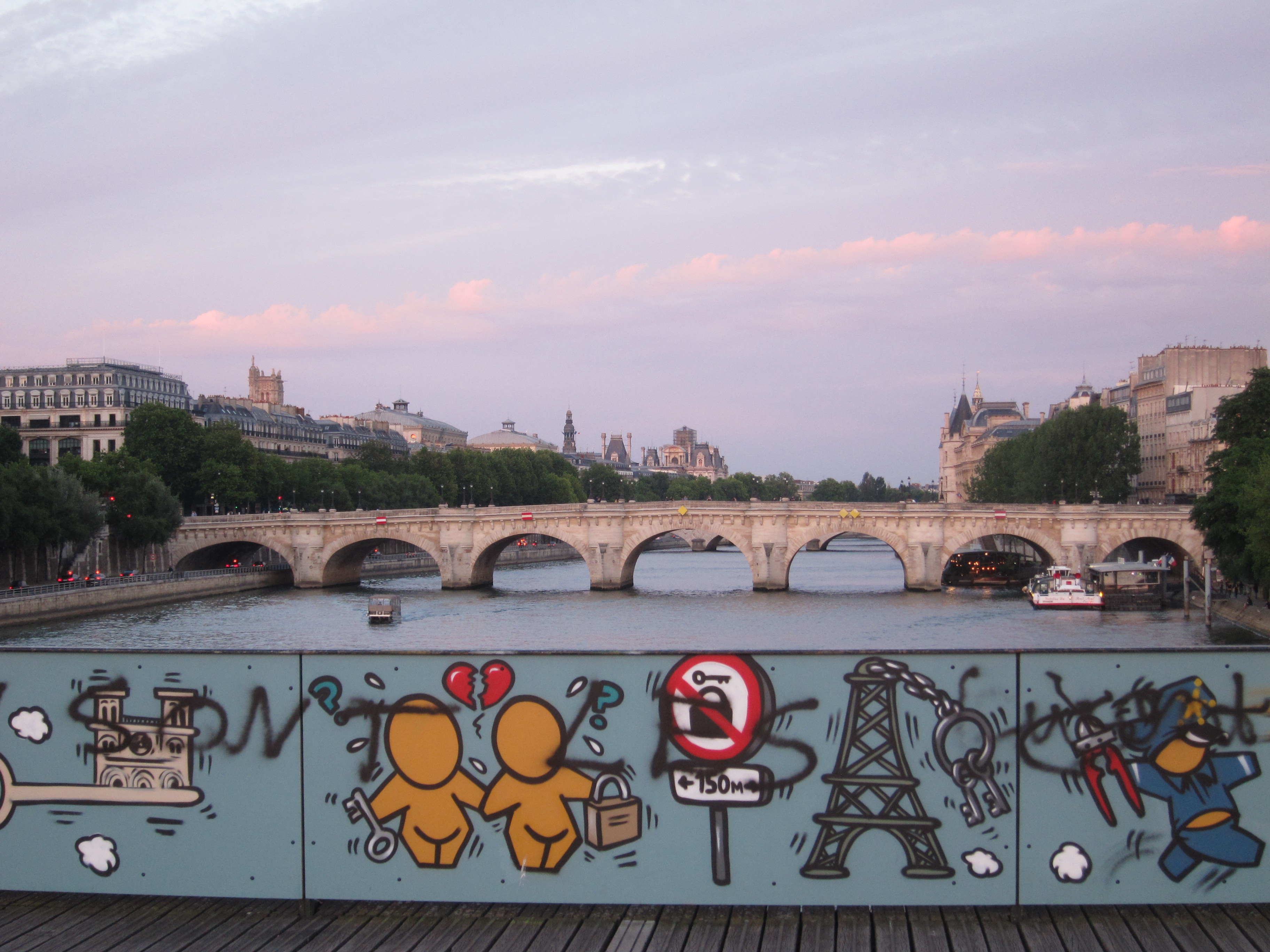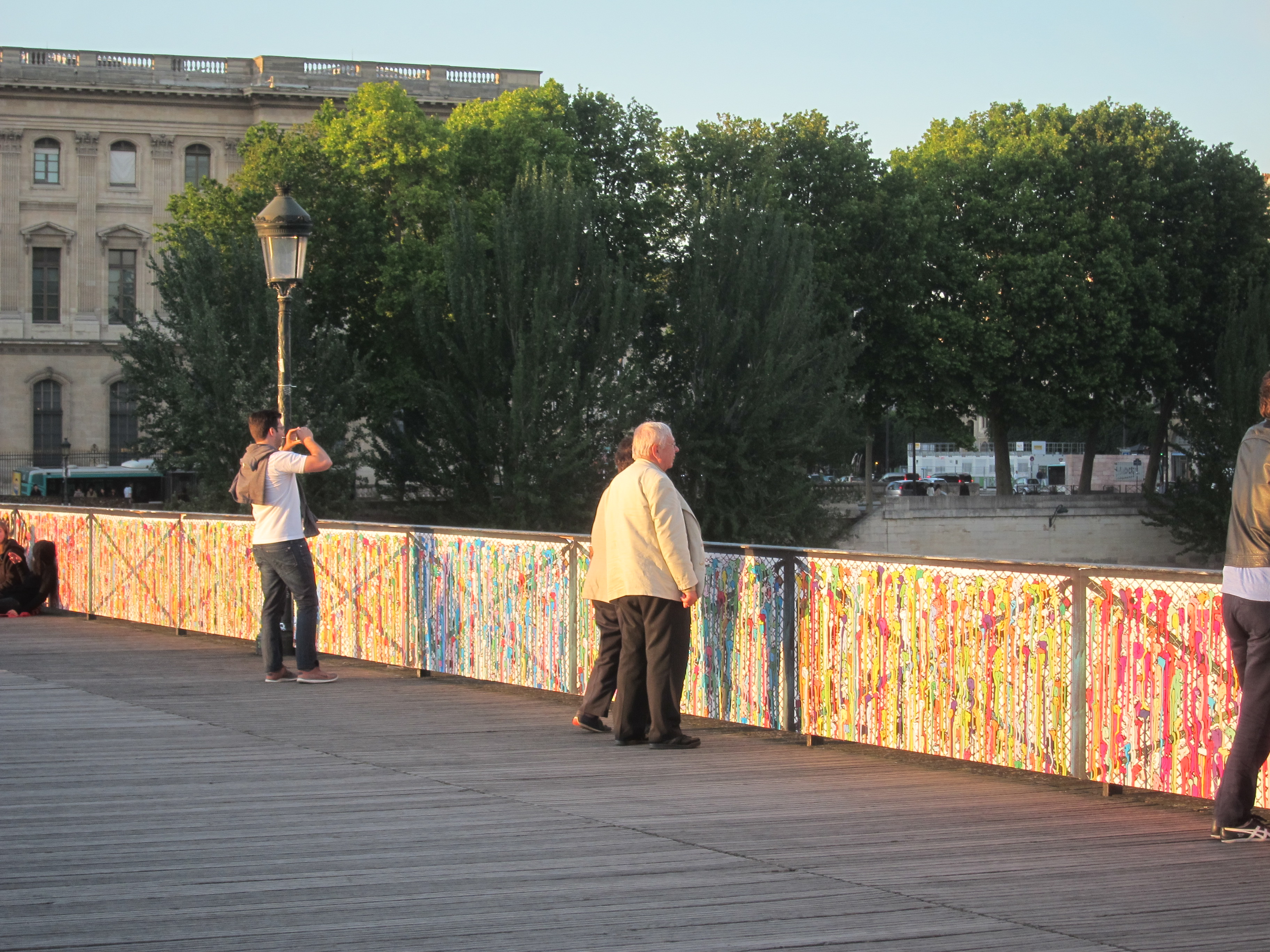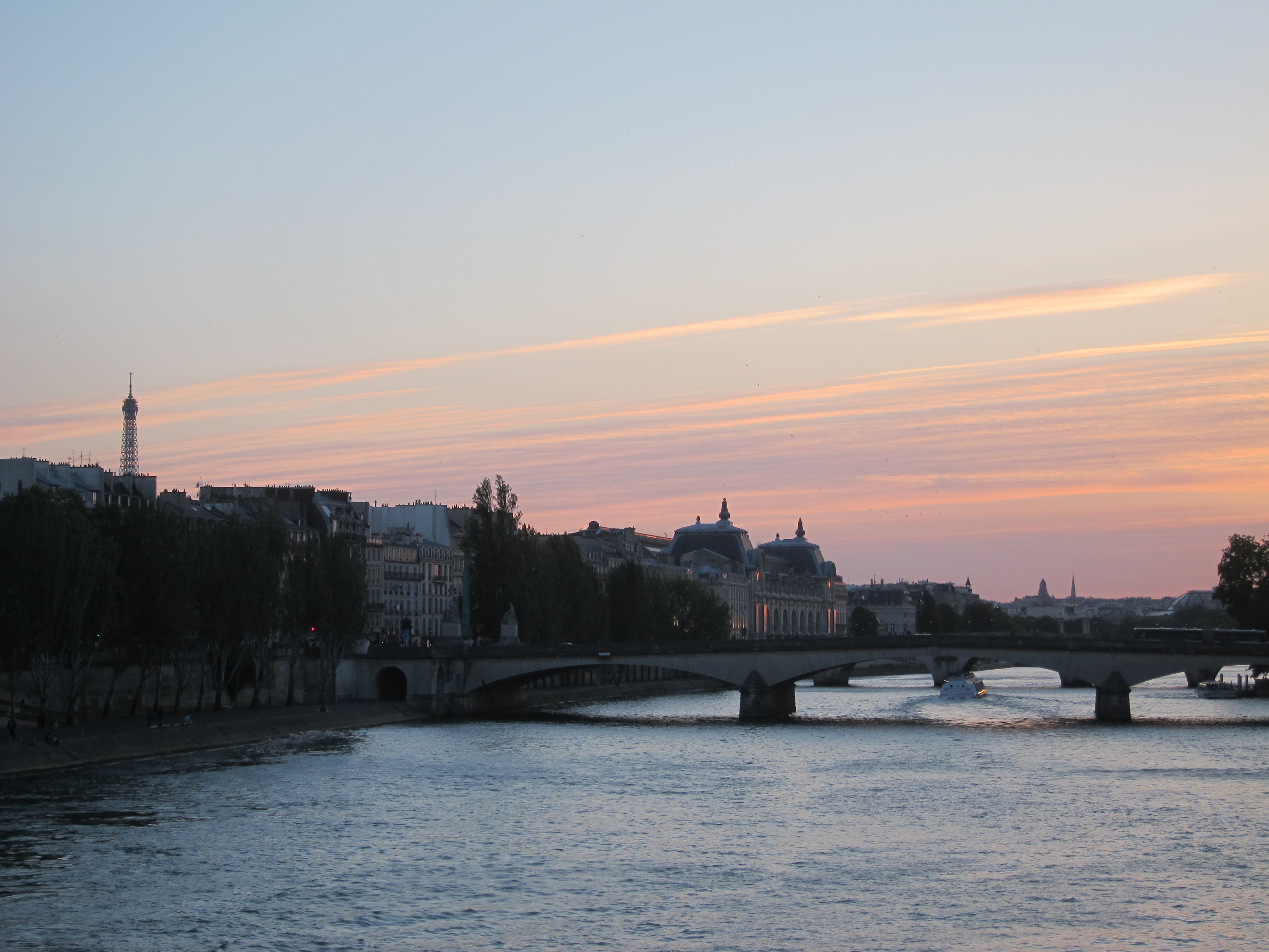 Mark was out of town on Monday night and I ventured out to the Pont des Arts (which has now re-opened with the temporary panels) to watch the sun set from the Seine.
